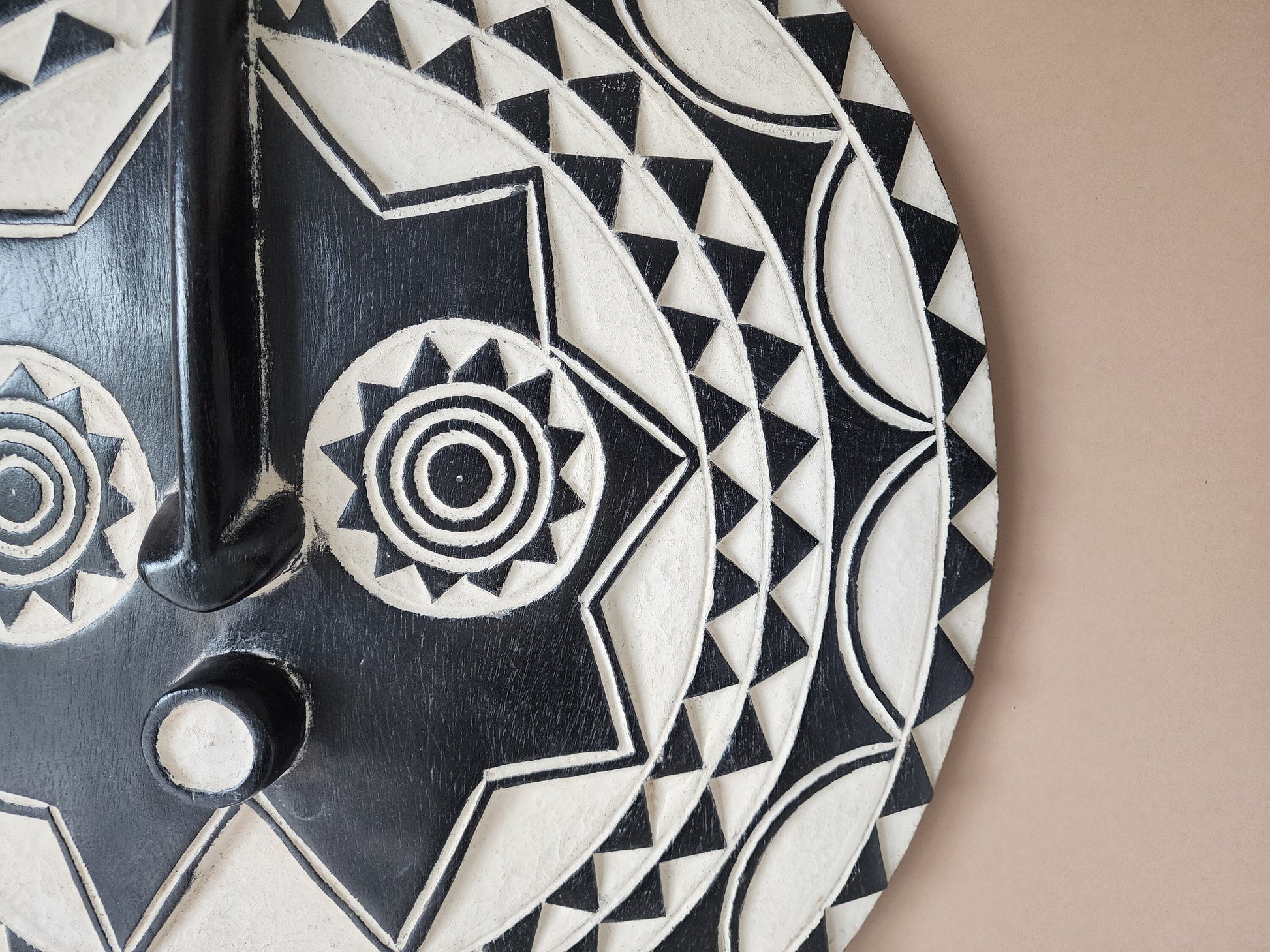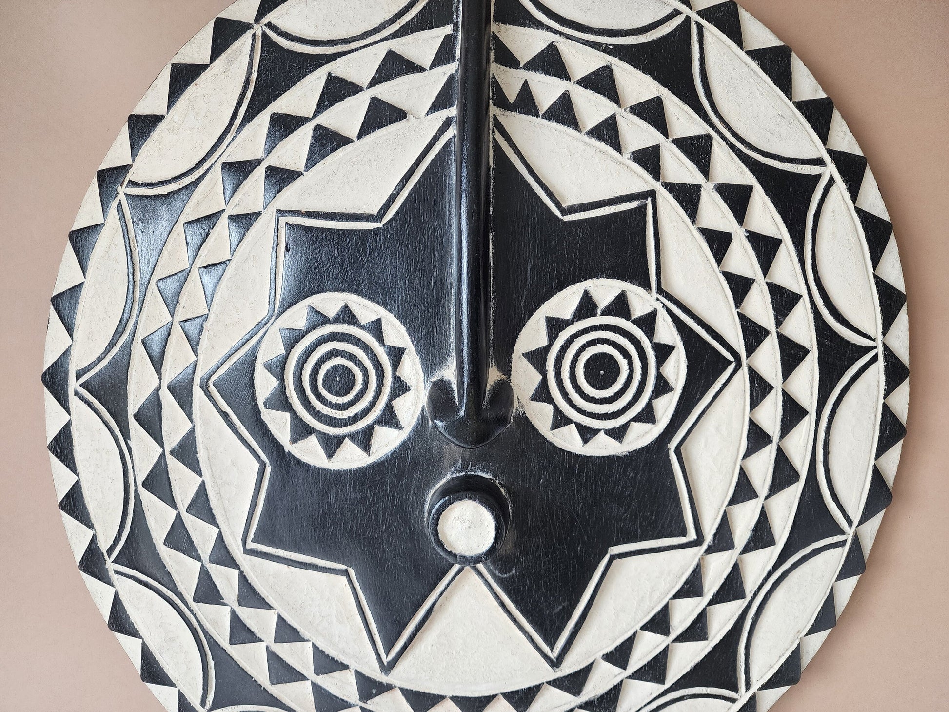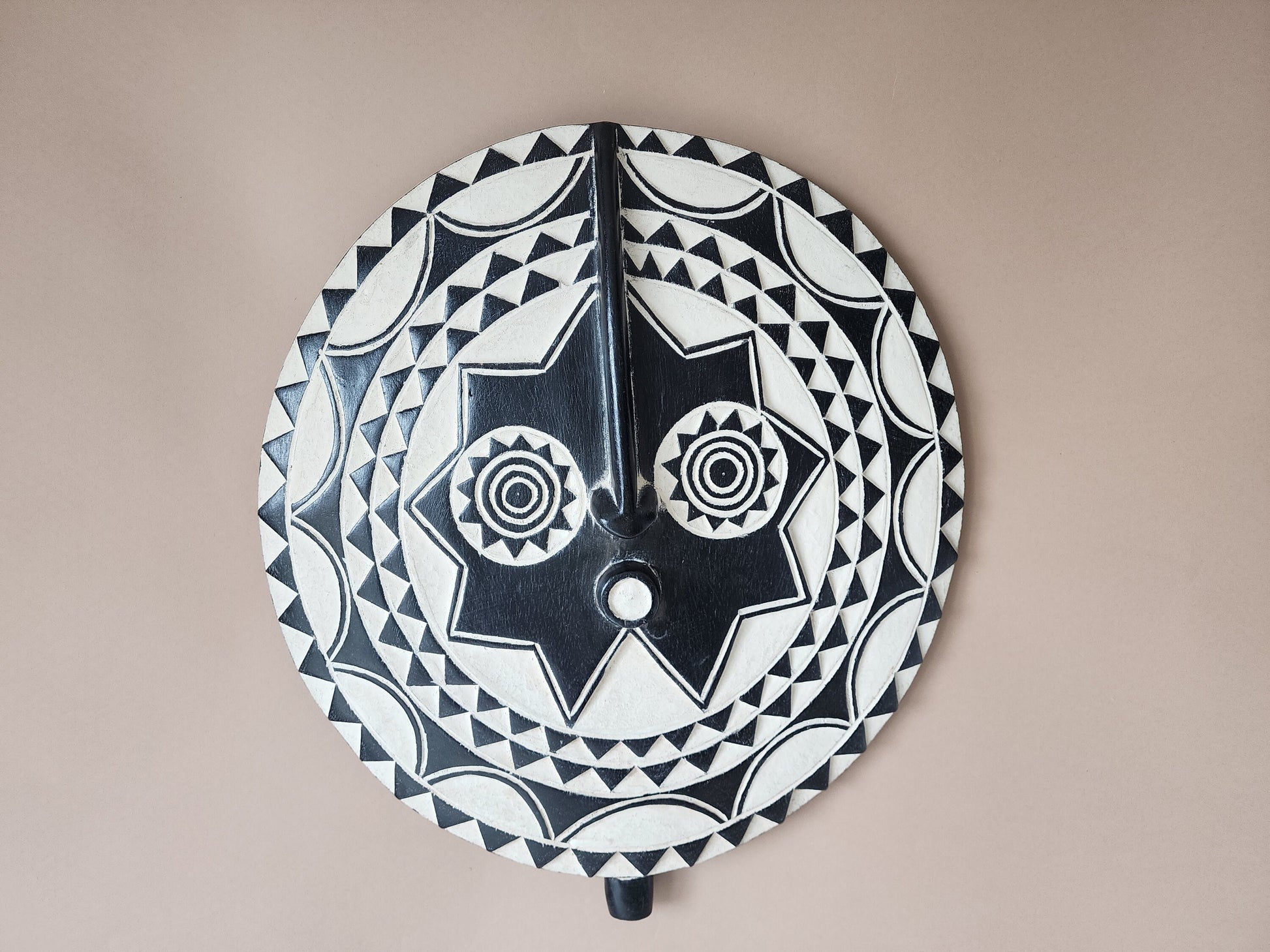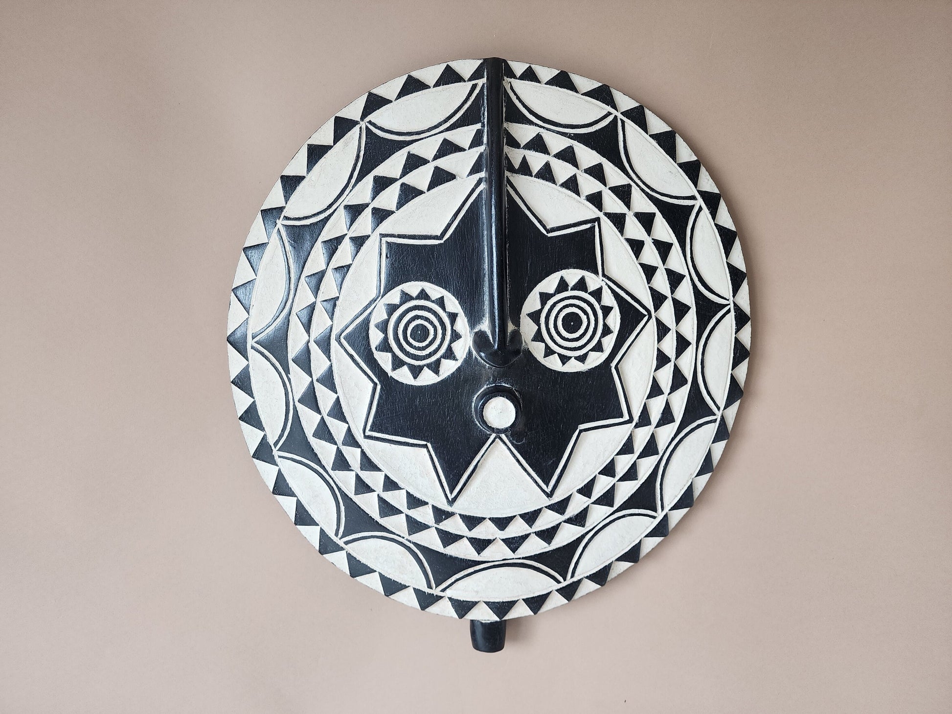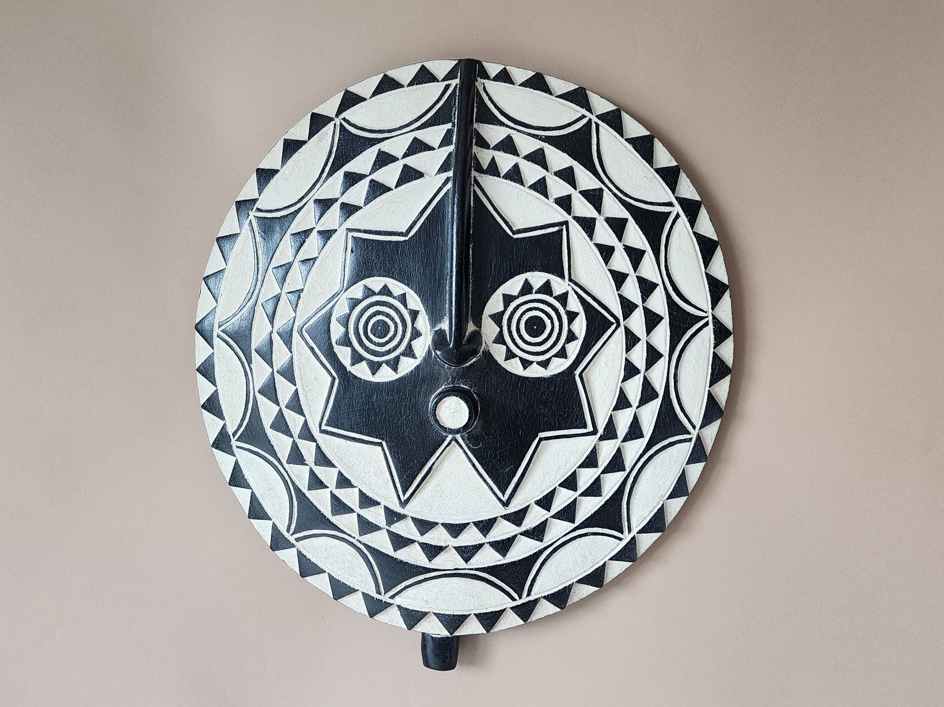 A very unique art object, this mask made of solid wood, which comes from the Bobo tribe who are farmers from eastern Burkina Faso. This artful mask is a perfect accent to any existing decor for any home. Small cracks, discoloration, etc are a normal part of the ageing process and add to the character of each item.