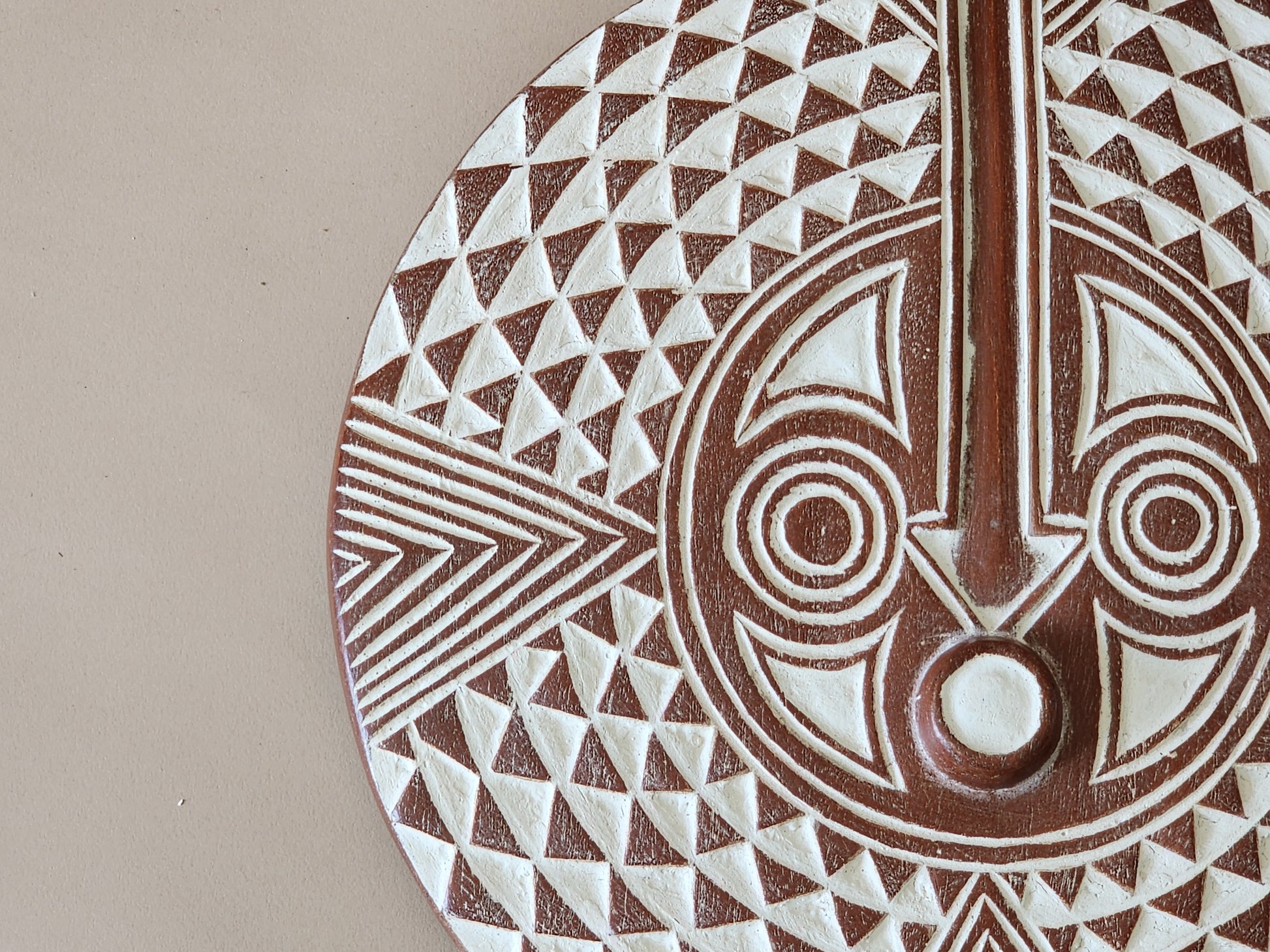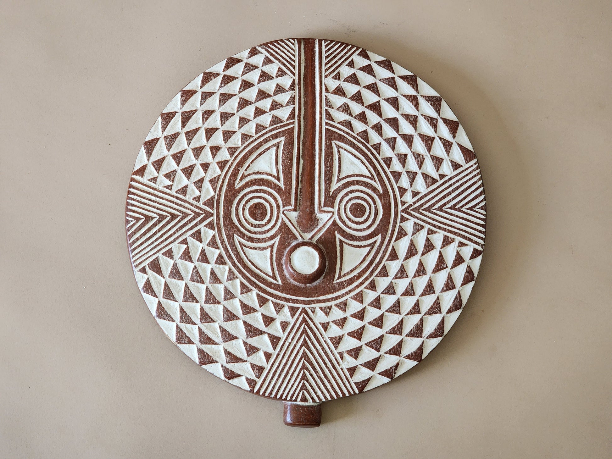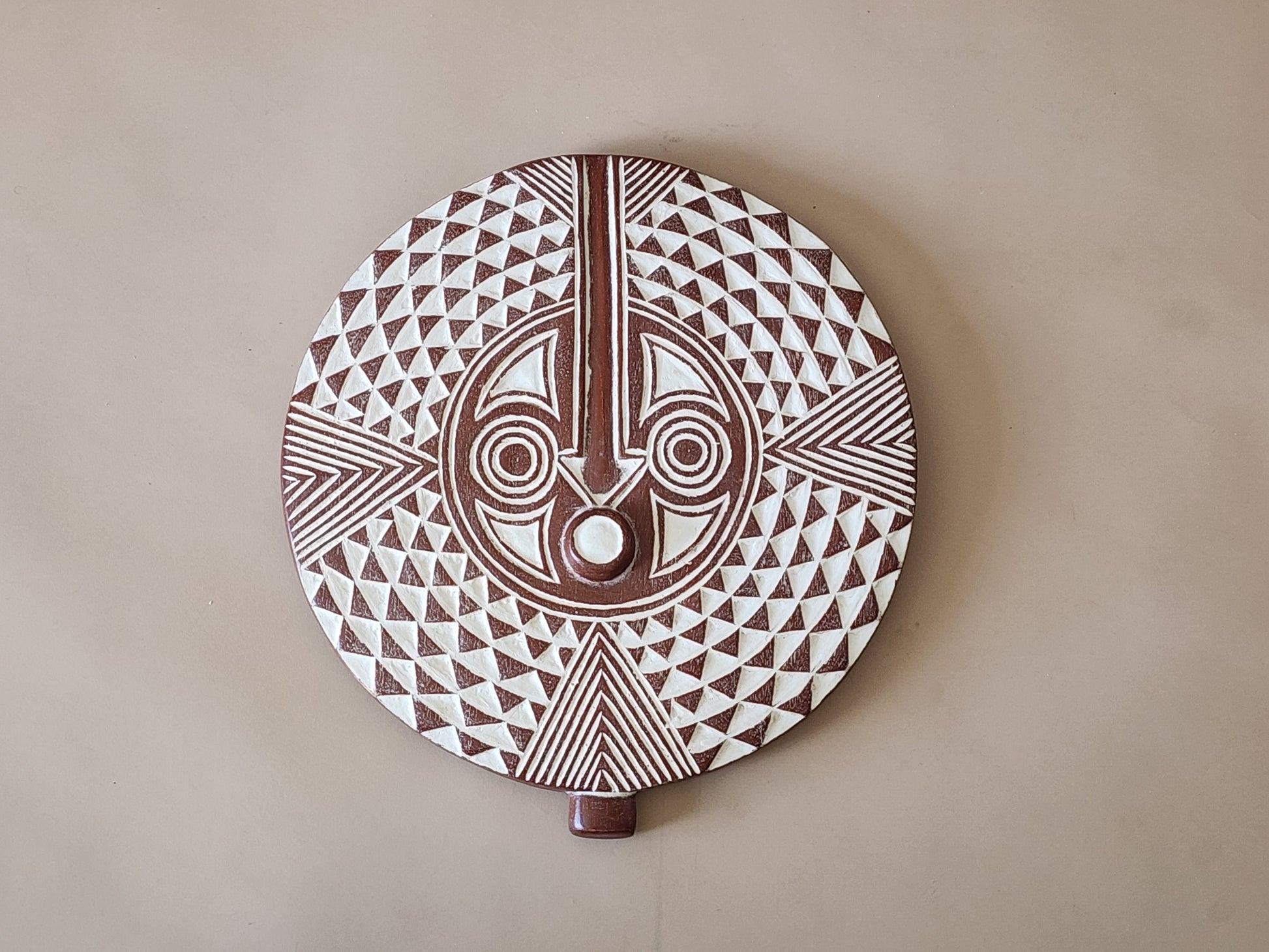A very unique art object, this mask made of solid wood, which comes from the Bamileke tribe who are farmers from Western Cameroon . This artful mask is a perfect accent to any existing decor for any home. Small cracks, discoloration, etc are a normal part of the ageing process and add to the character of each item.