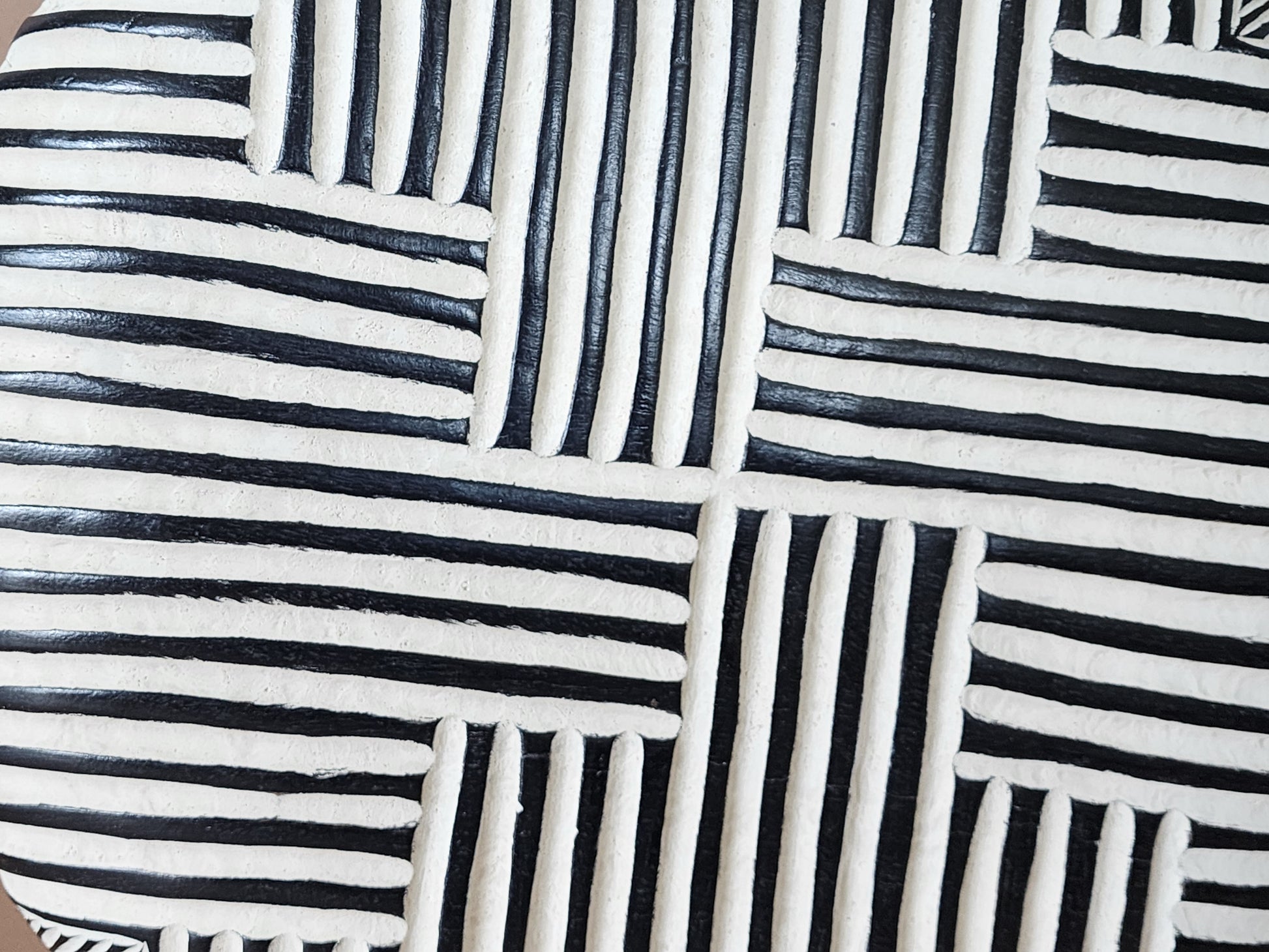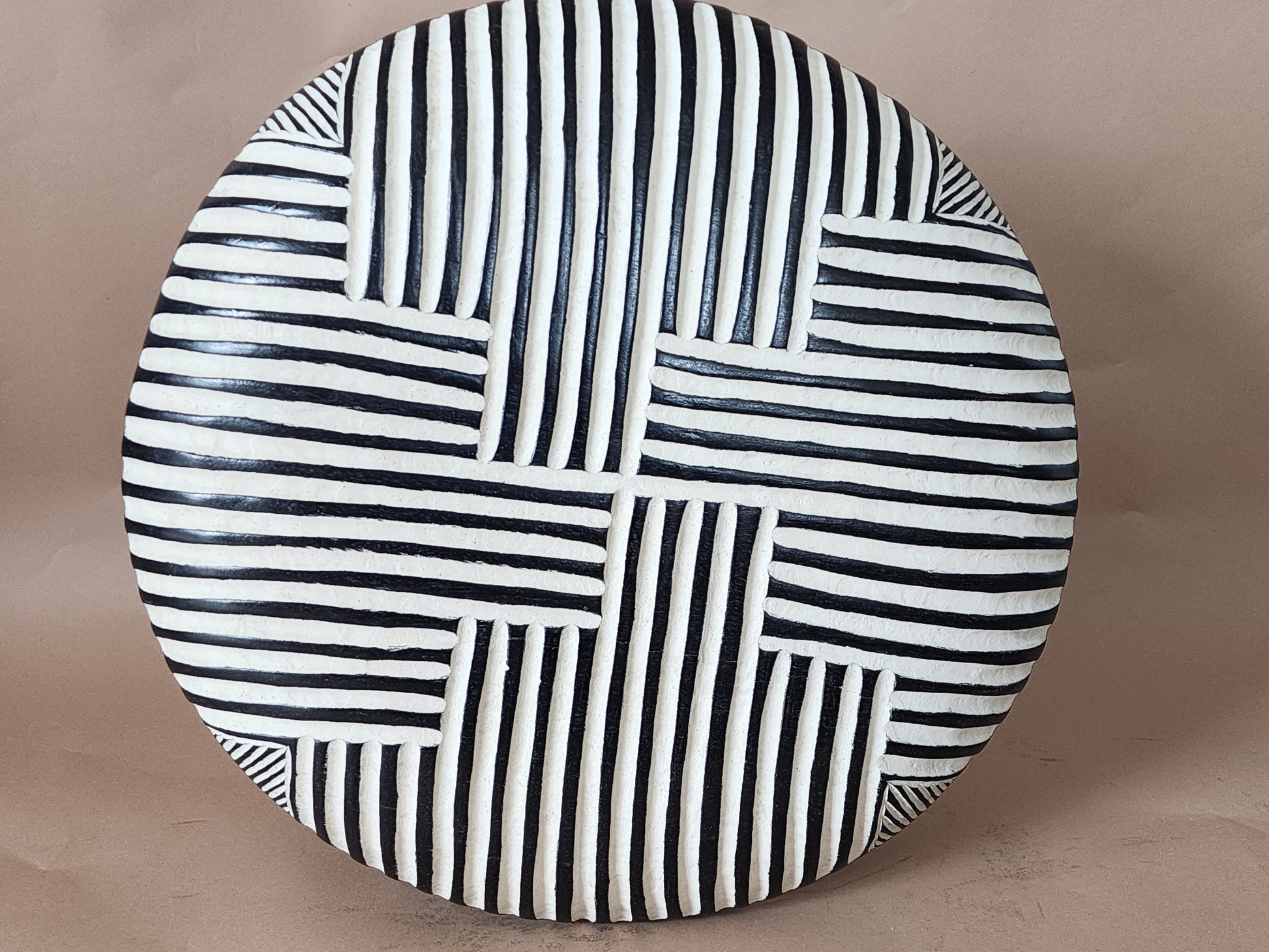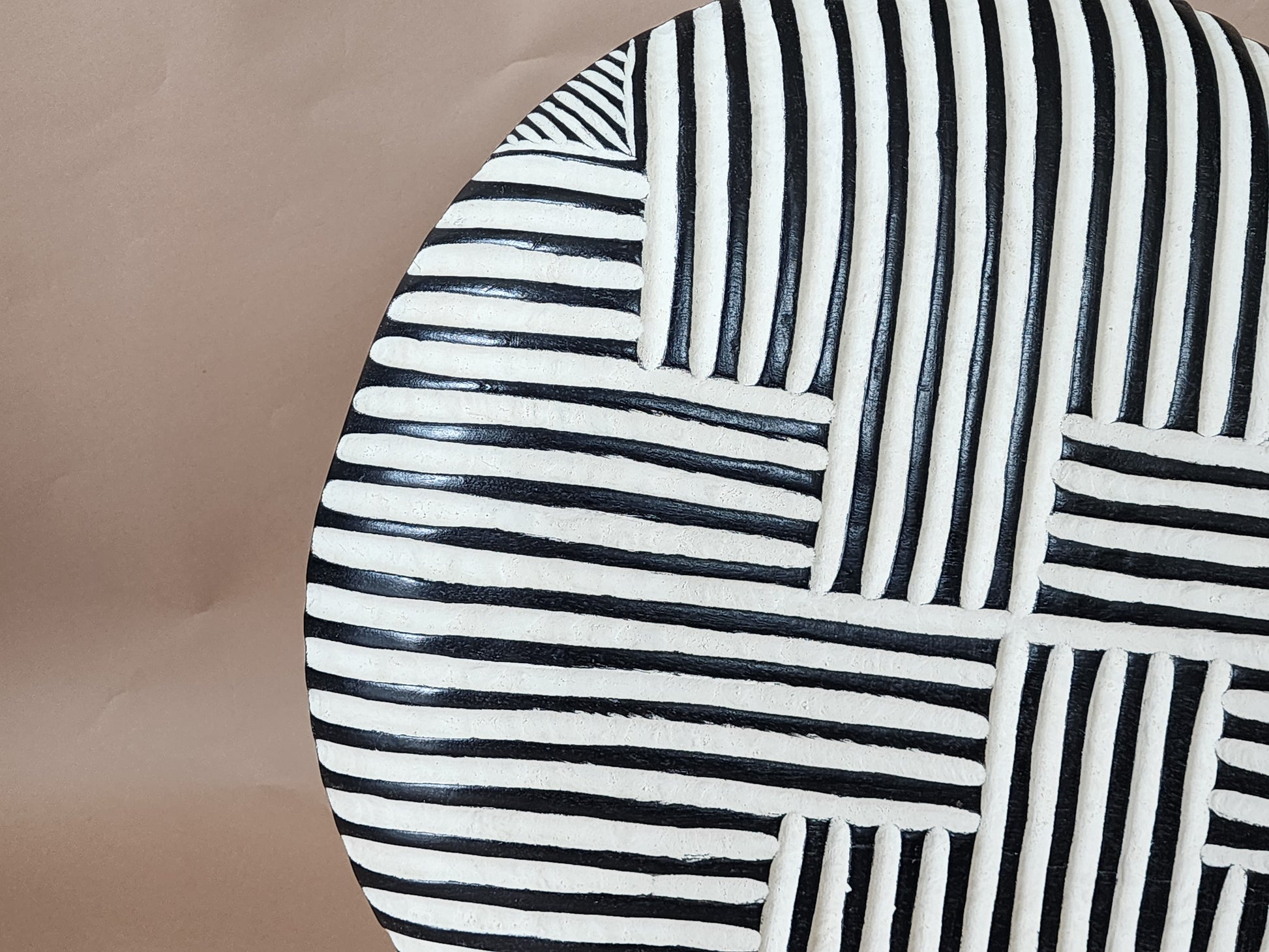 Bamelike people in western Cameroon, decorated with geometric forms. These talented people produce gorgeous arts pieces highly coveted for home re-looking.