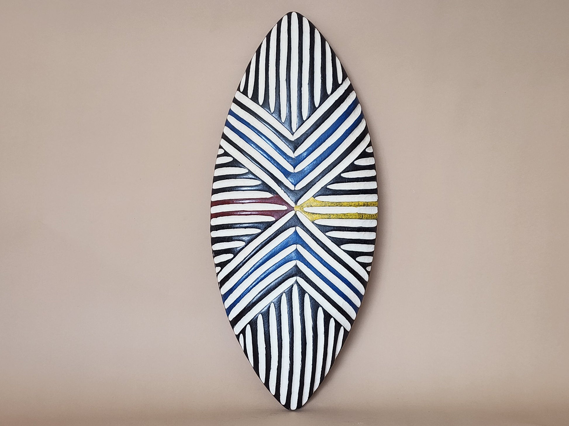 The history of African shield is deeply tied within a various Africans tribes people like Zulu tribe, Bamileke tribe, etc. African shields were designed to offer protection during battles and combats. Small, lightweight shields offered greater mobility for close combat, and large, heavier ones provided more protection during ground battles. The patterns and designs on the shield indicated the person’s rank and status on the battlefield, as well as the ethnic group he belonged to.