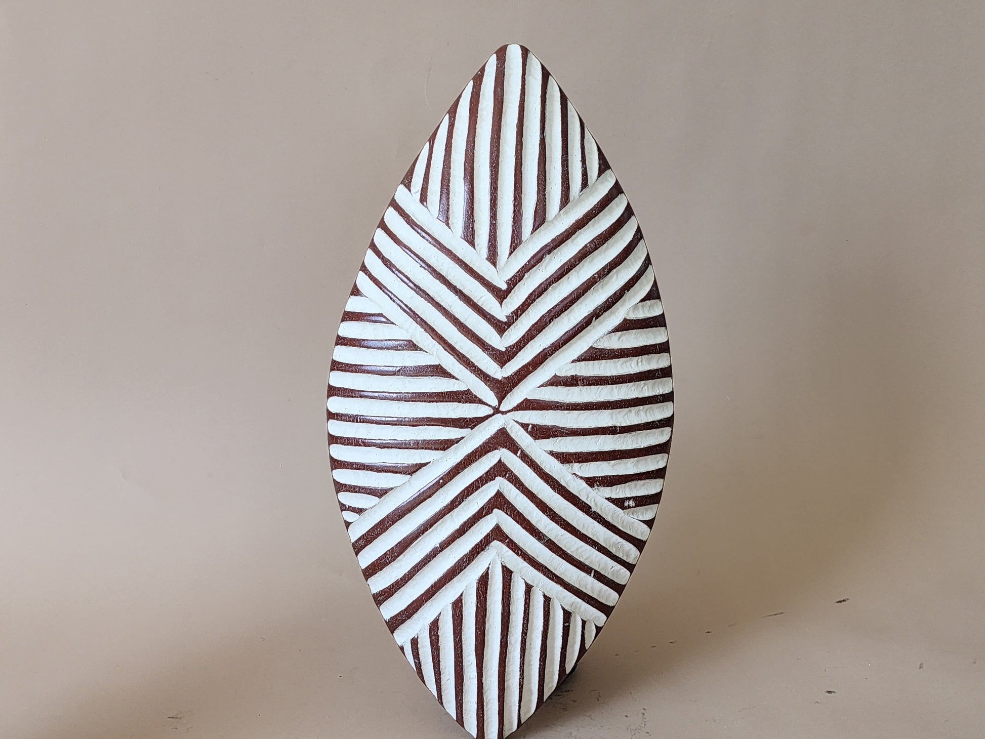 The shields are no longer used in battle and are used for cultural customs and rites. A beautiful interior decoration art piece for the home.