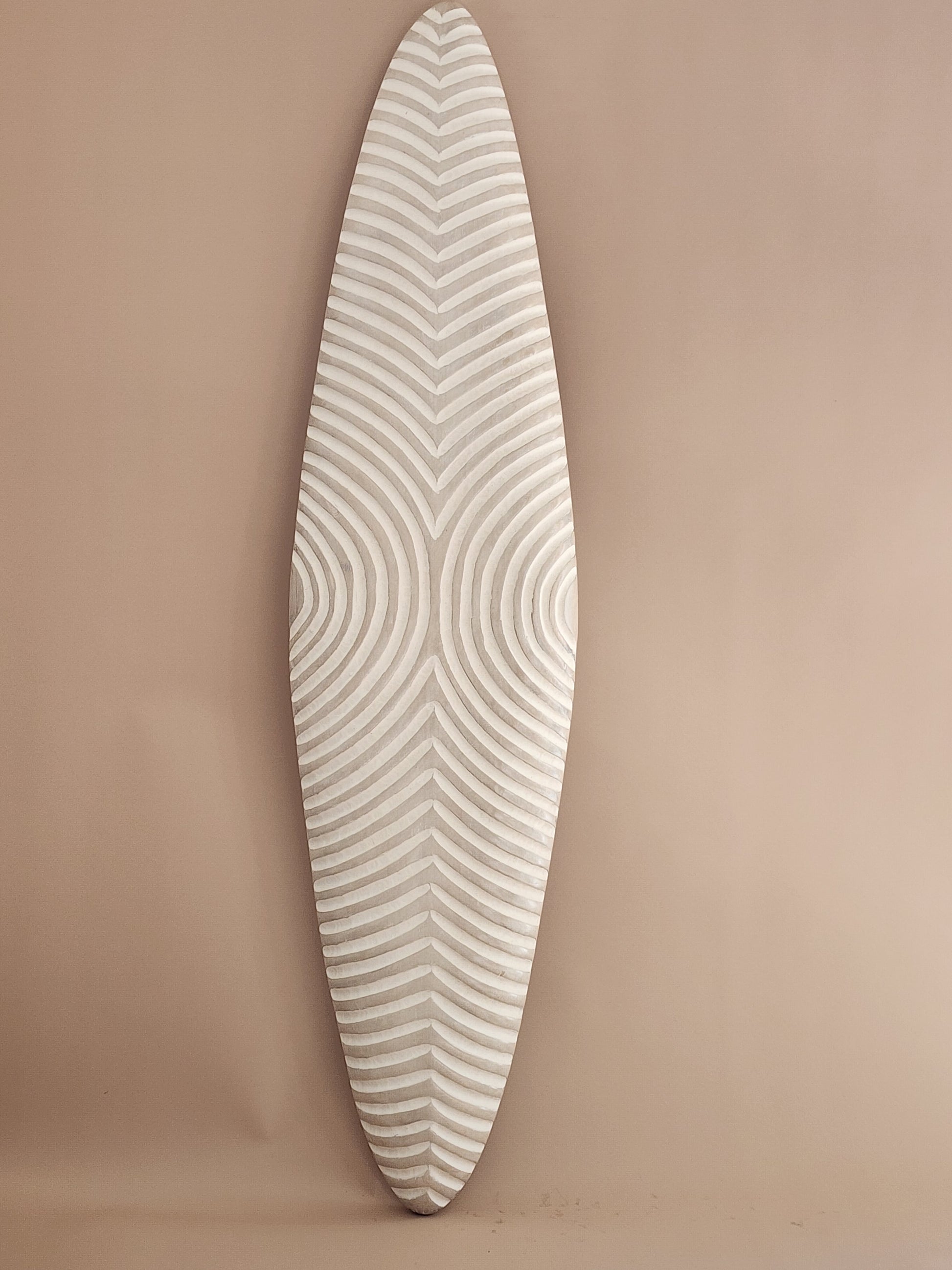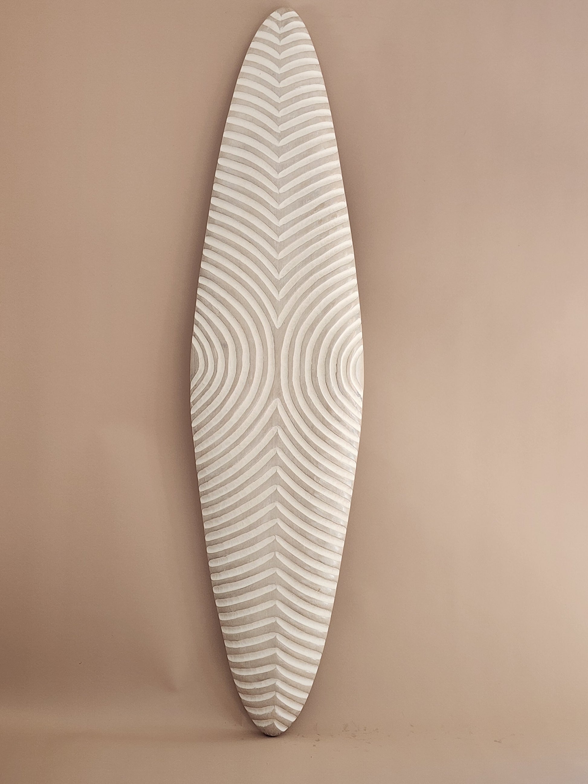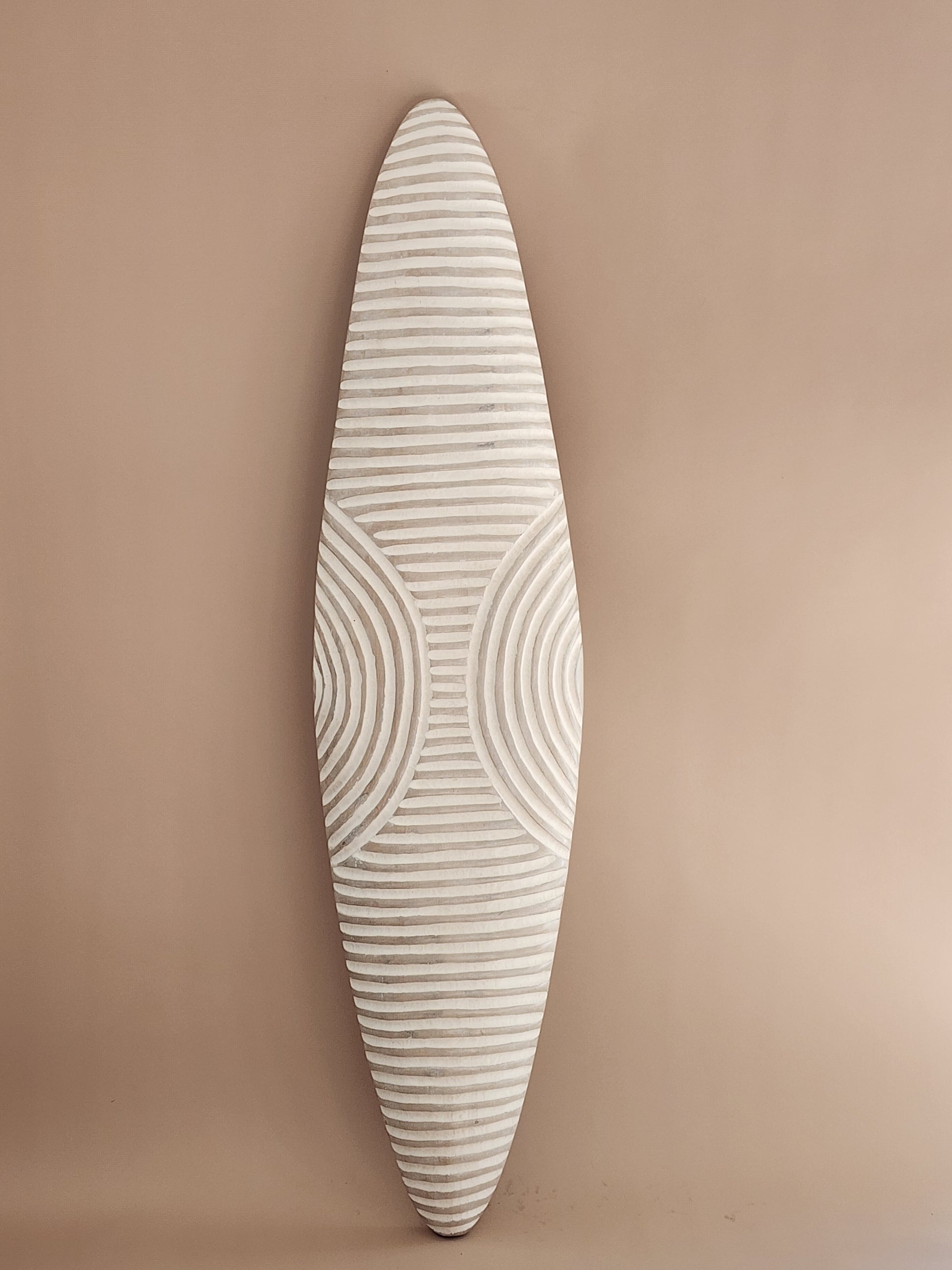 This shield is Hand-carved from one solid piece of Baobab wood, a sacred wood used for medicinal and ritual purposes for centuries, his wooden weapon with its formidable physical was a great asset in battle.