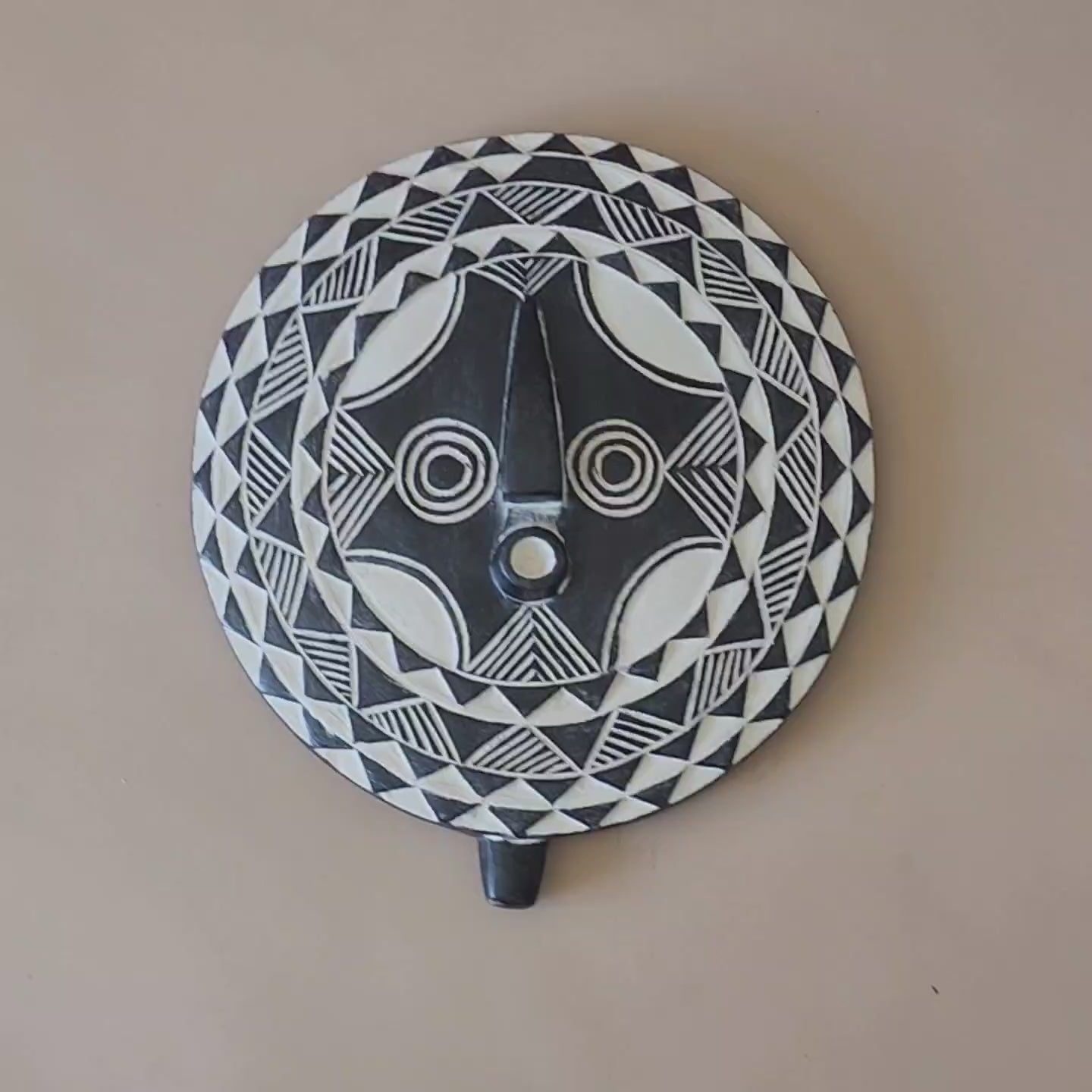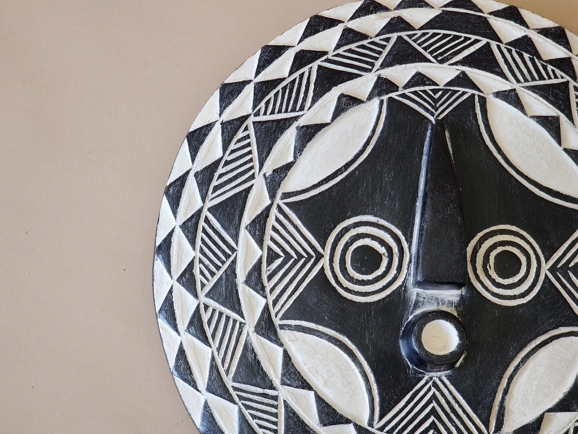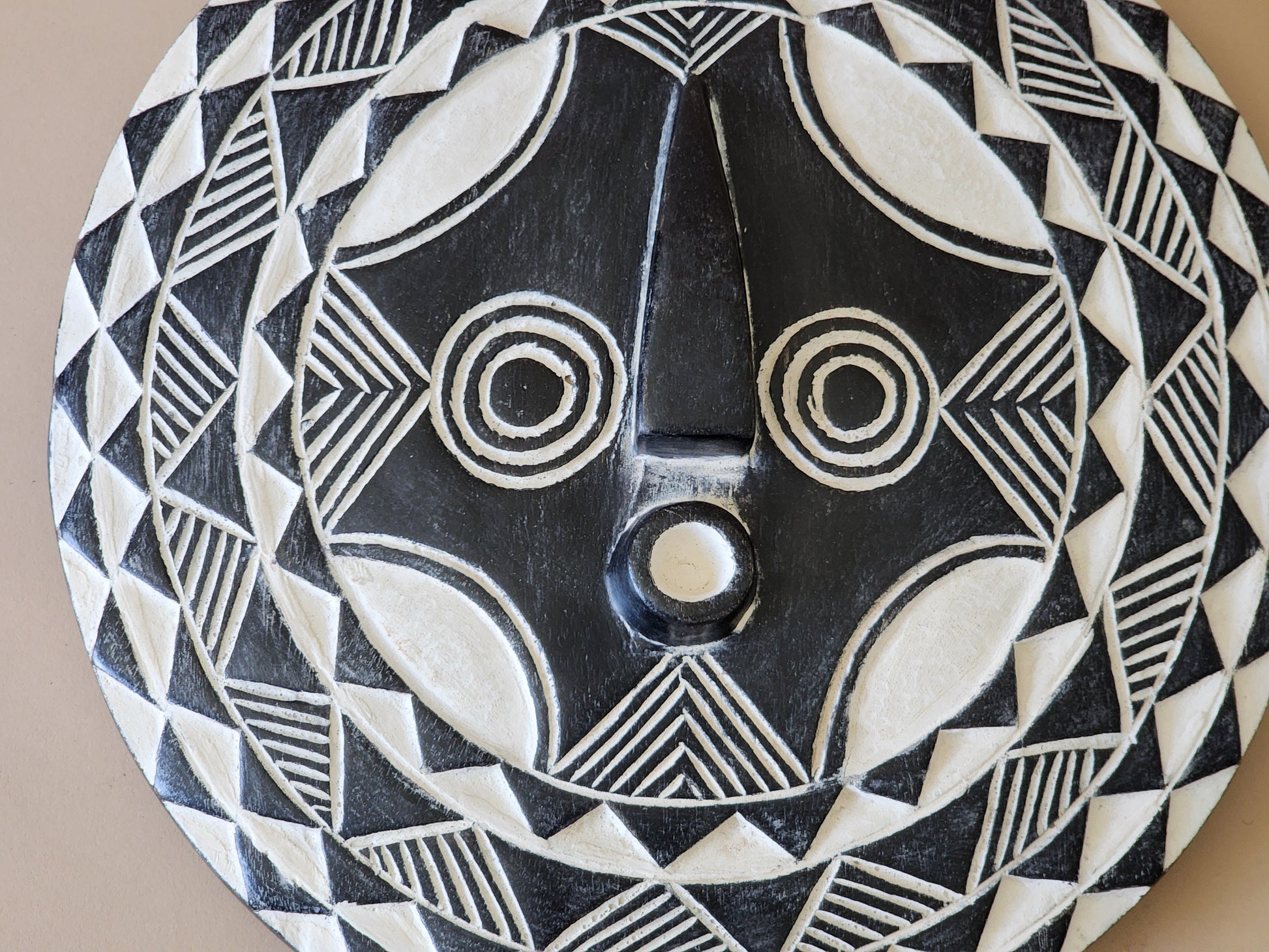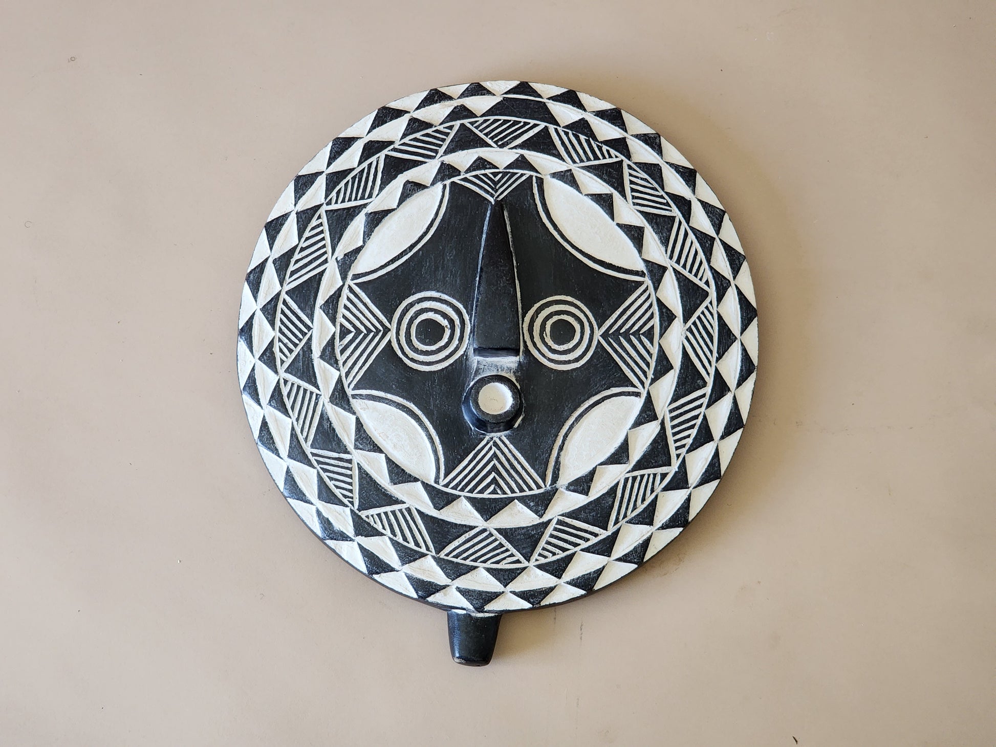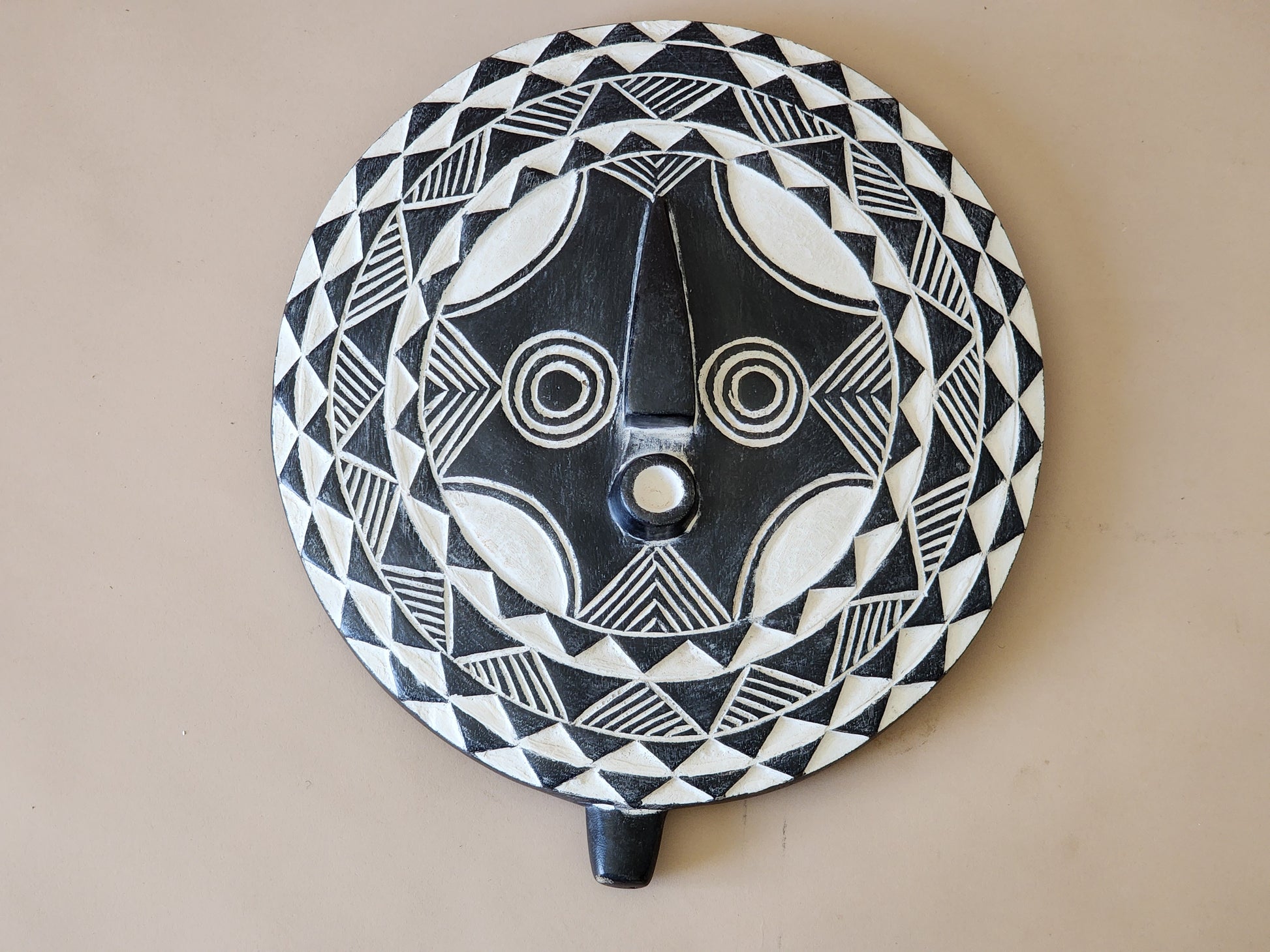 A very unique art object, this mask made of solid wood, which comes from the Bamileke tribe who are farmers from Western Cameroon . This artful mask is a perfect accent to any existing decor for any home. Small cracks, discoloration, etc are a normal part of the ageing process and add to the character of each item.