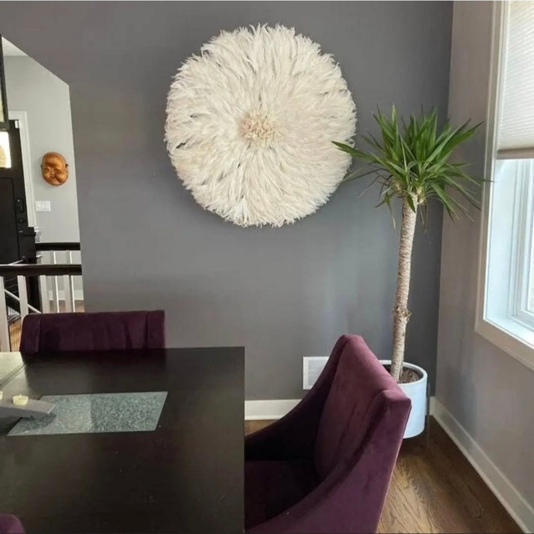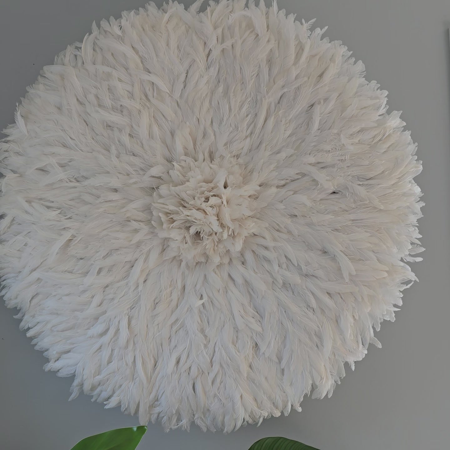 Originally a traditional headdress worn during ceremonies in the Bamiléké kingdom of Cameroon, the juju hat has been transformed into a magnificent WALL DECORATION made from natural feathers. Adding a touch of elegance and culture, the juju hat is perfect for adding color and texture to your home. Meticulously handcrafted by skilled artisans, each piece embodies authentic craftsmanship and cultural heritage.