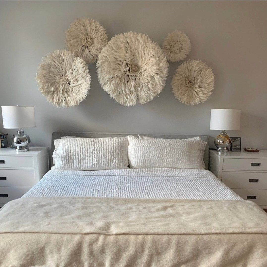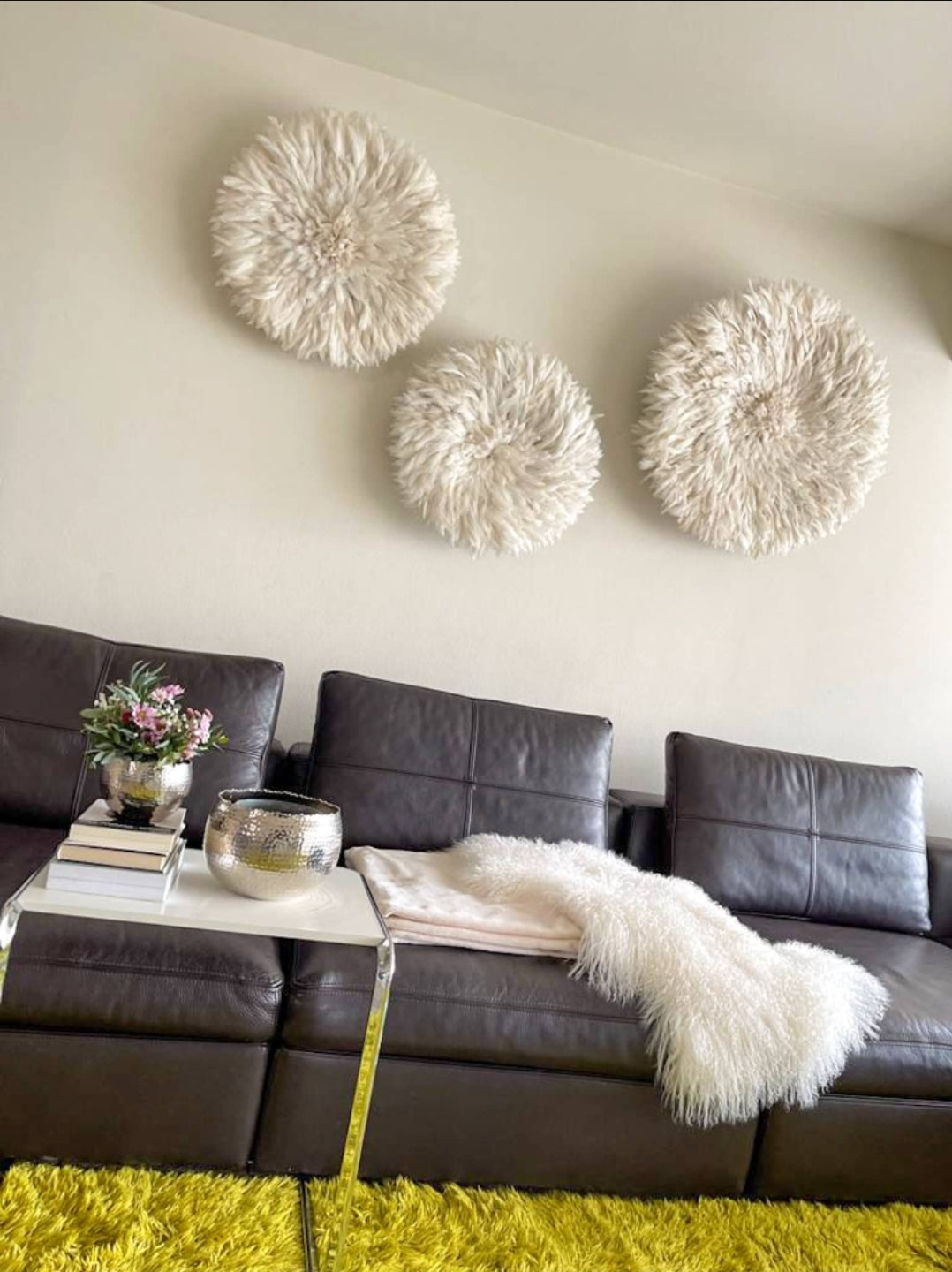 SYMBOLIC: it symbolizes the PROSPERITY and ABUNDANCE of the Bamileke people. It can help attract wealth and success to your home or business. The color white symbolizes purity, peace, and light. It creates a clean, balanced, and soothing atmosphere. The white juju hat brings an airy softness while highlighting the natural structure of the room. Timeless and versatile, it fits seamlessly into any decor style: Scandinavian, bohemian, minimalist, or contemporary.