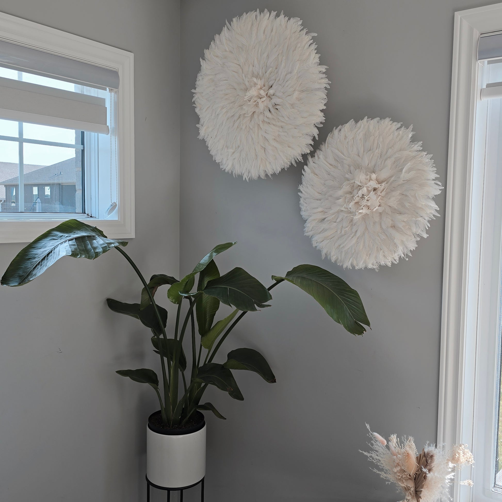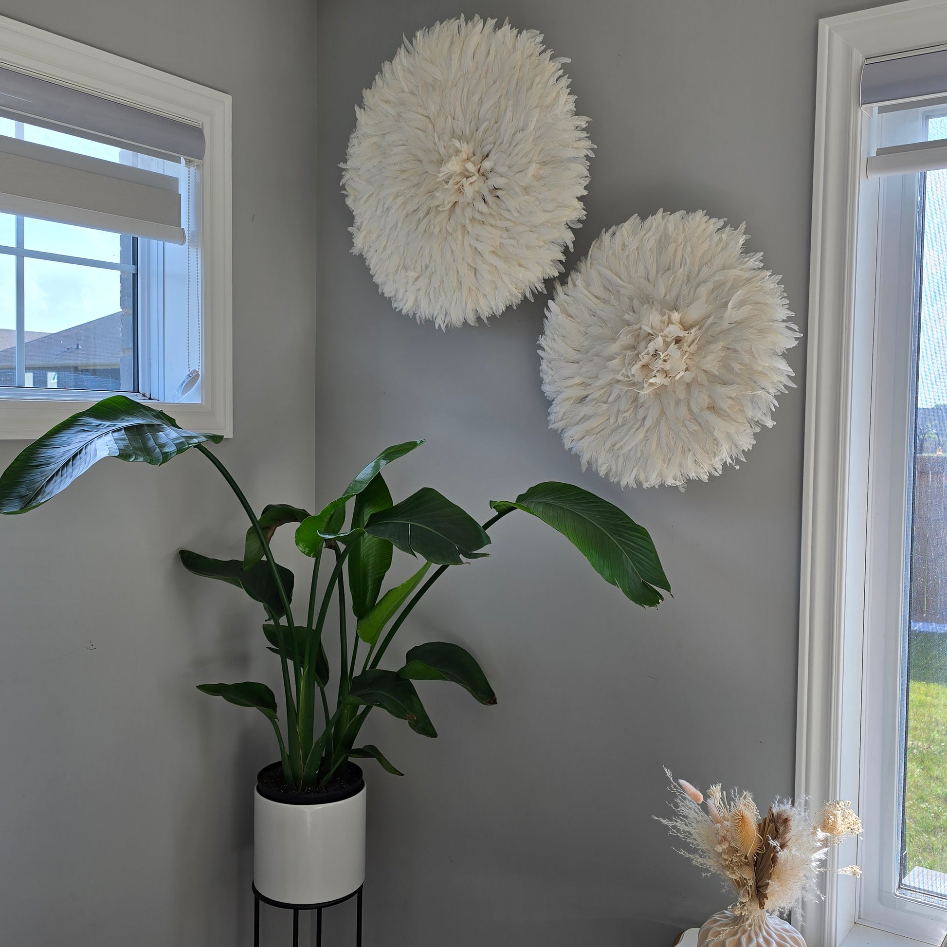 SYMBOLIC: it symbolizes the PROSPERITY and ABUNDANCE of the Bamileke people. It can help attract wealth and success to your home or business. The color white symbolizes purity, peace, and light. It creates a clean, balanced, and soothing atmosphere. The white juju hat brings an airy softness while highlighting the natural structure of the room. Timeless and versatile, it fits seamlessly into any decor style: Scandinavian, bohemian, minimalist, or contemporary.