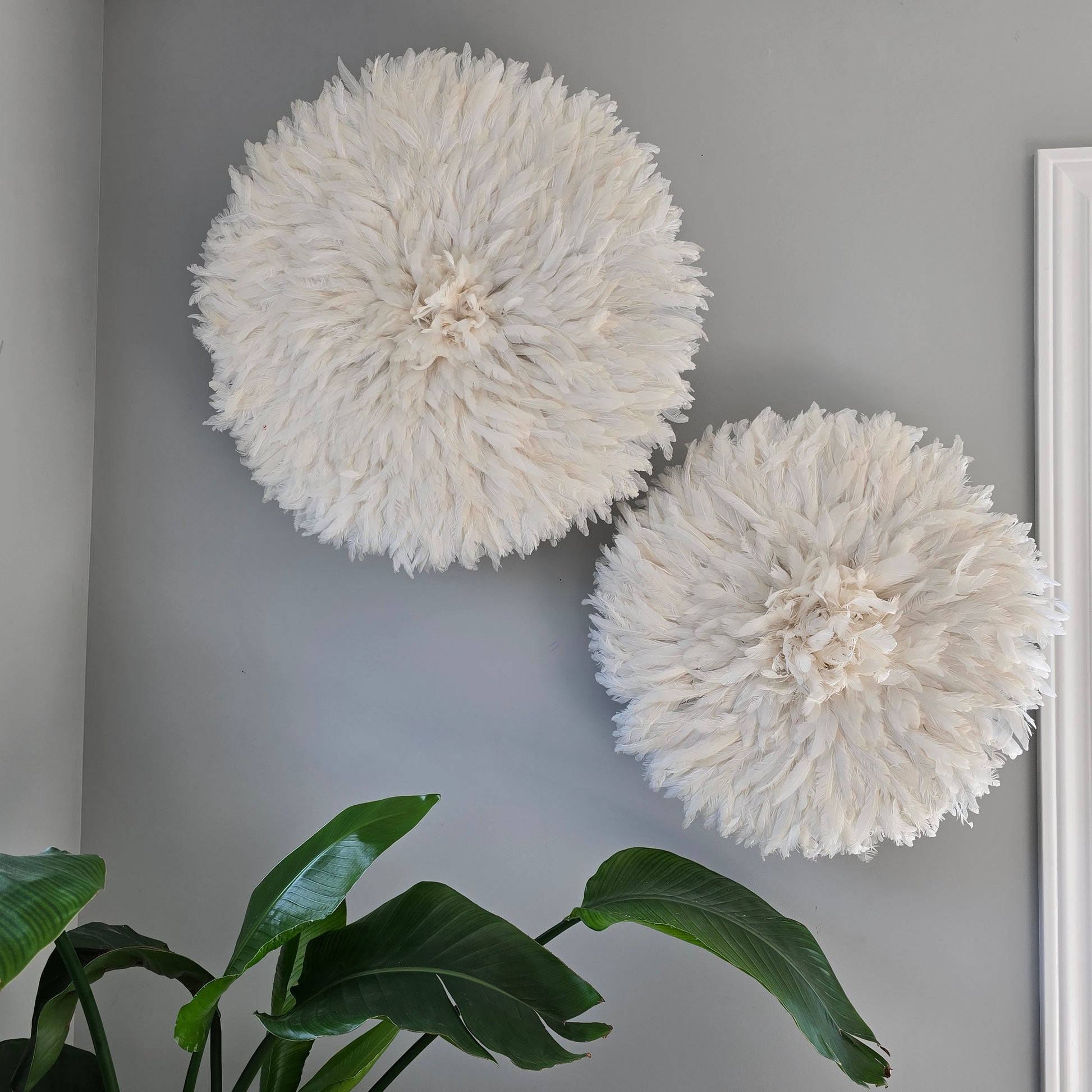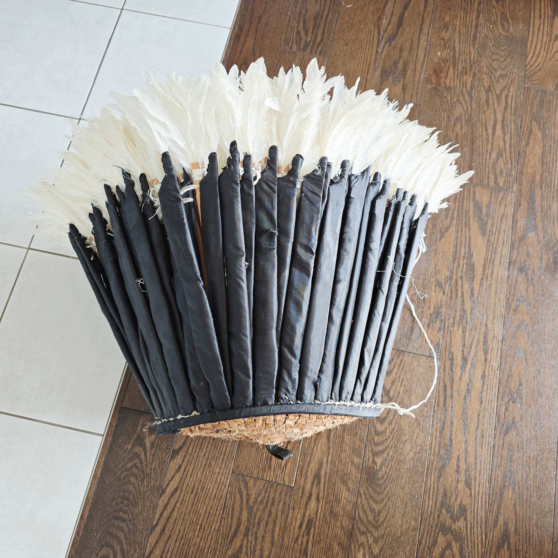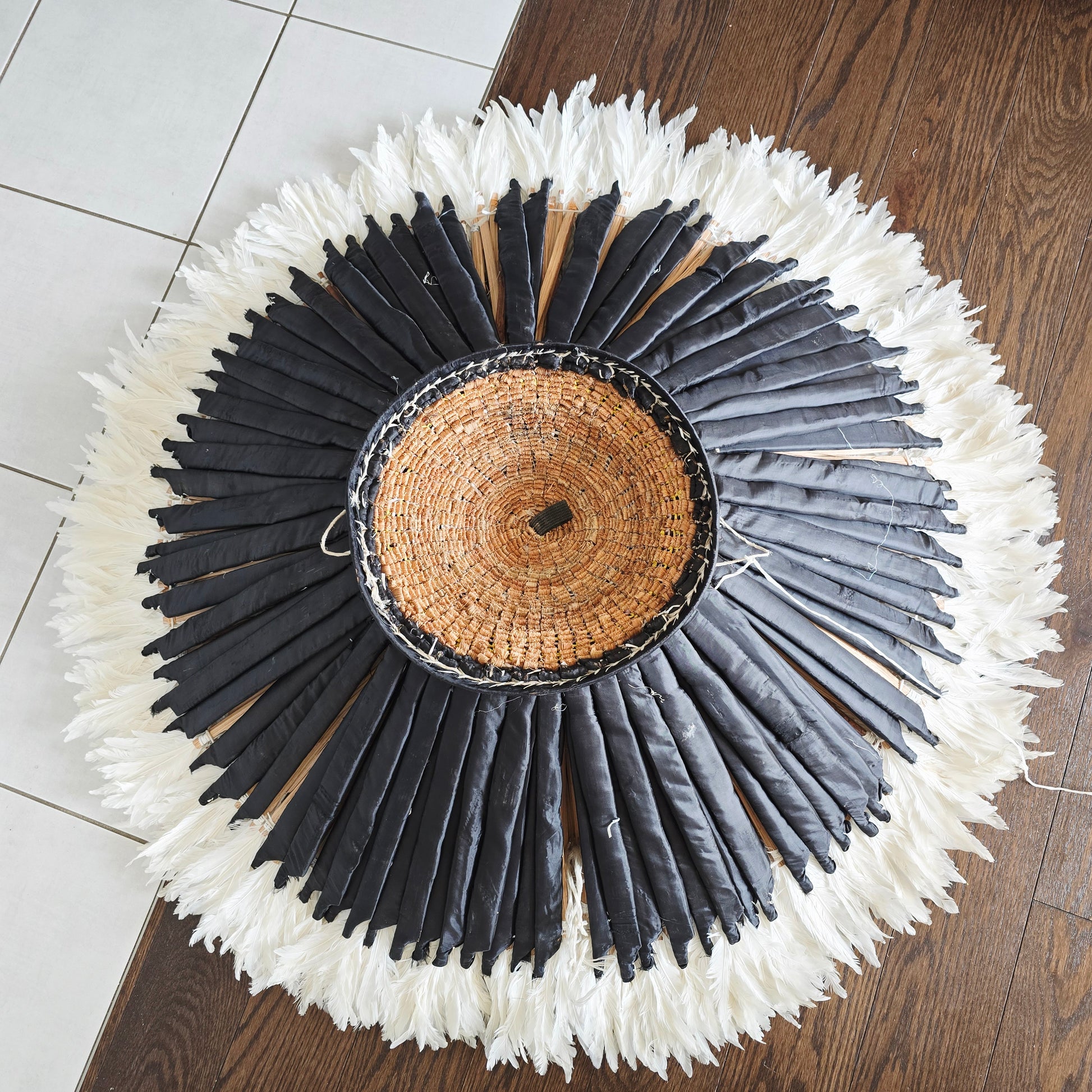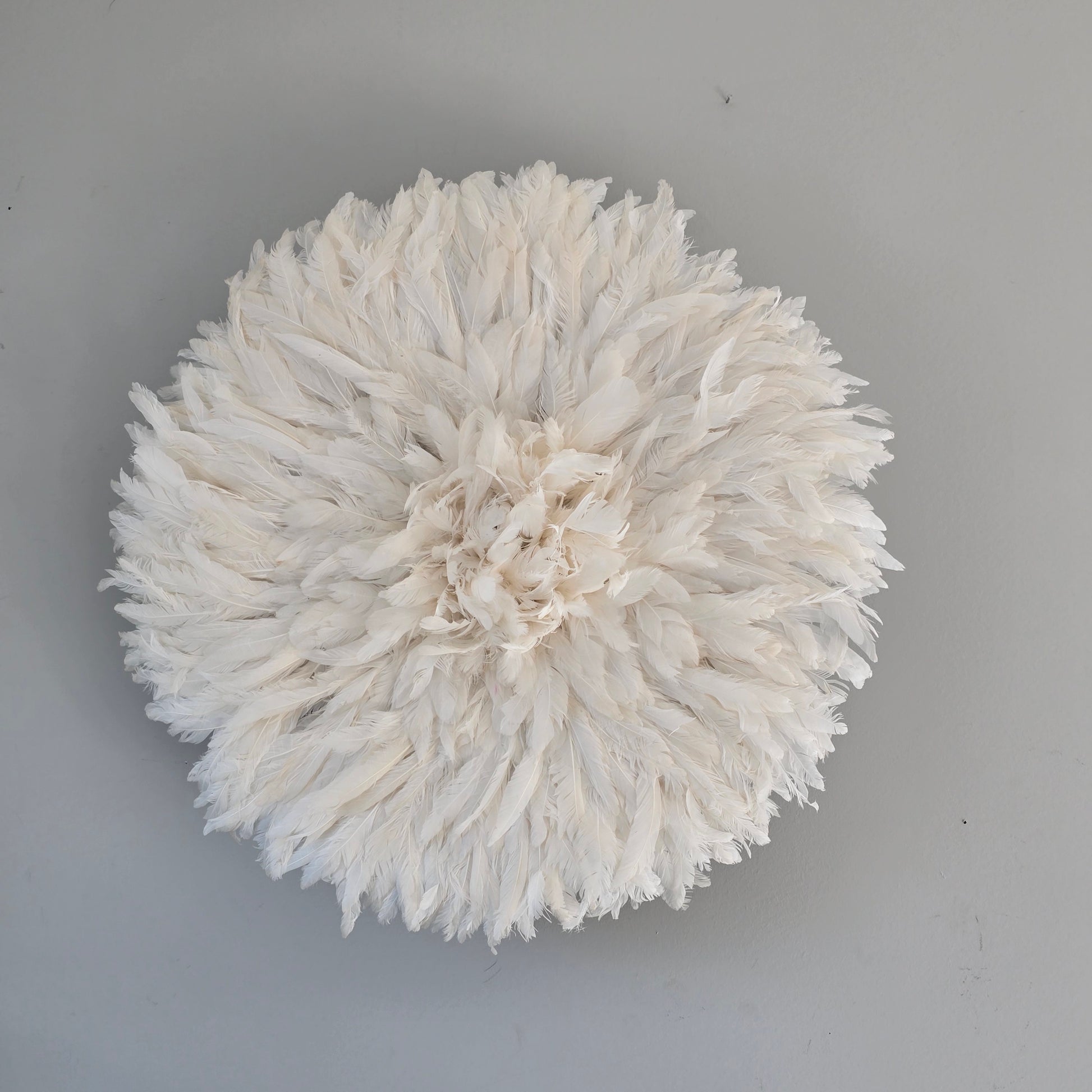 Originally a traditional headdress worn during ceremonies in the Bamiléké kingdom of Cameroon, the juju hat has been transformed into a magnificent WALL DECORATION made from natural feathers. Adding a touch of elegance and culture, the juju hat is perfect for adding color and texture to your home. Meticulously handcrafted by skilled artisans, each piece embodies authentic craftsmanship and cultural heritage.