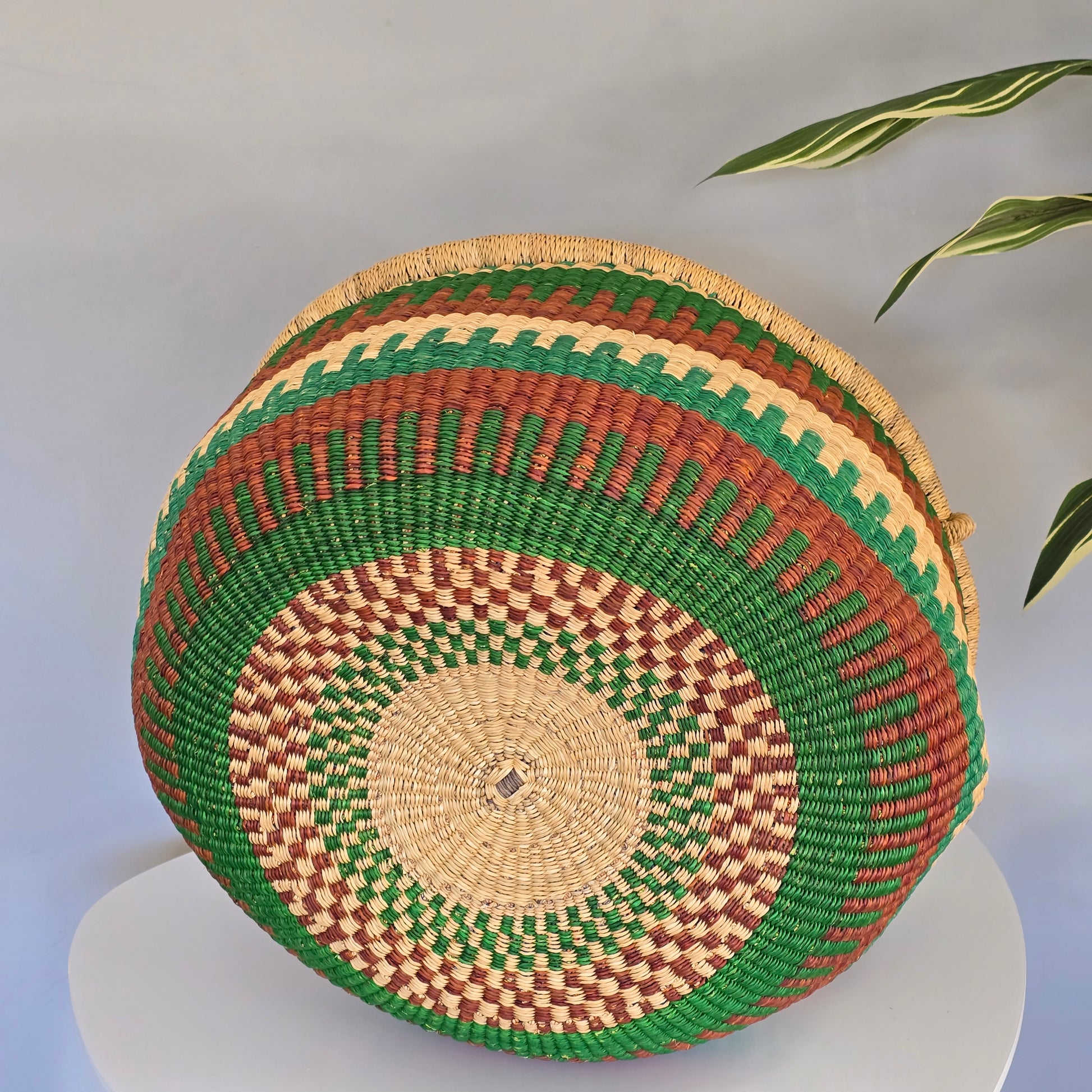 This beautiful handmade market basket is manufactured by craftsman living in Bolgatanga and surrounding villages in Africa.