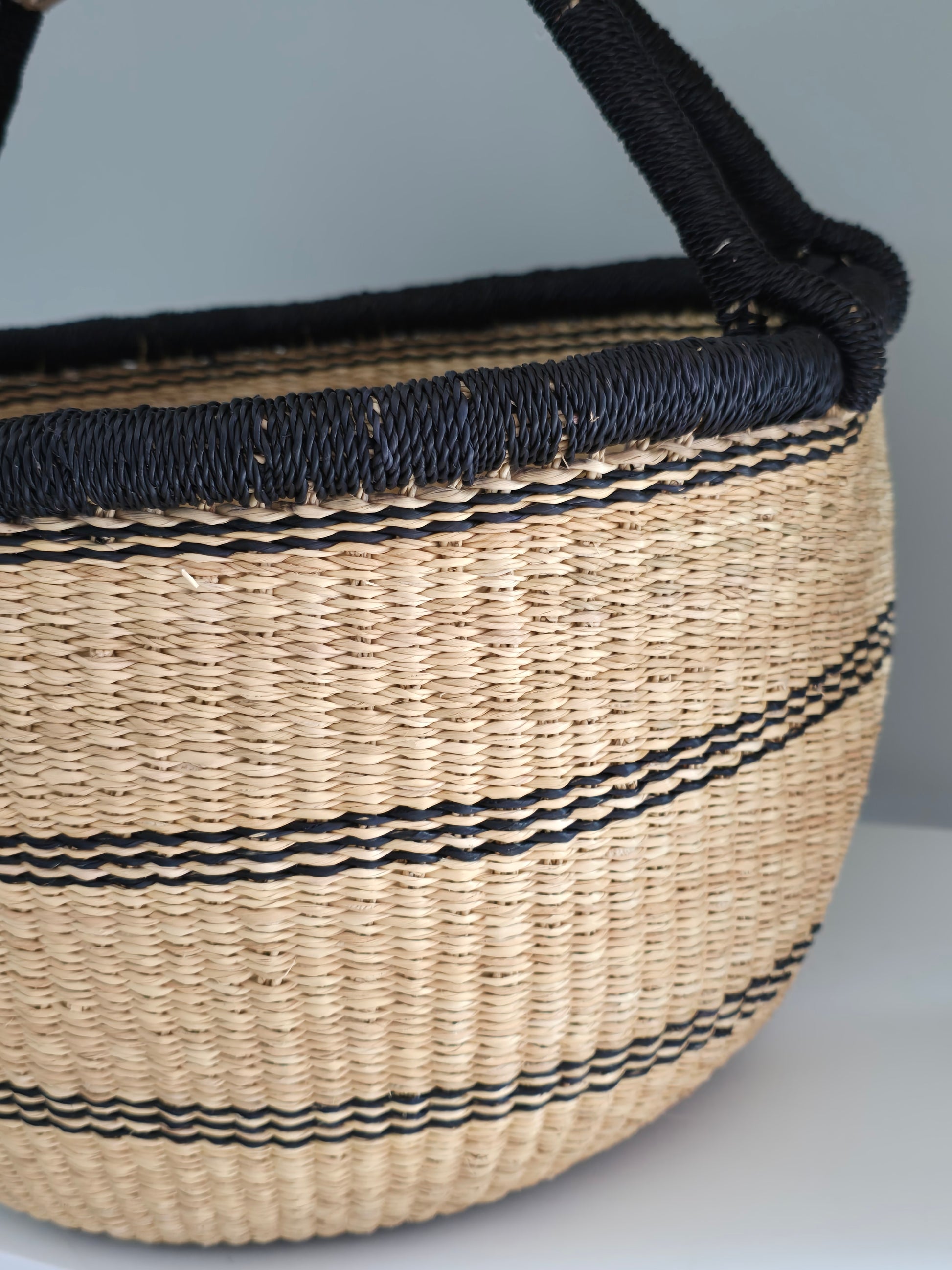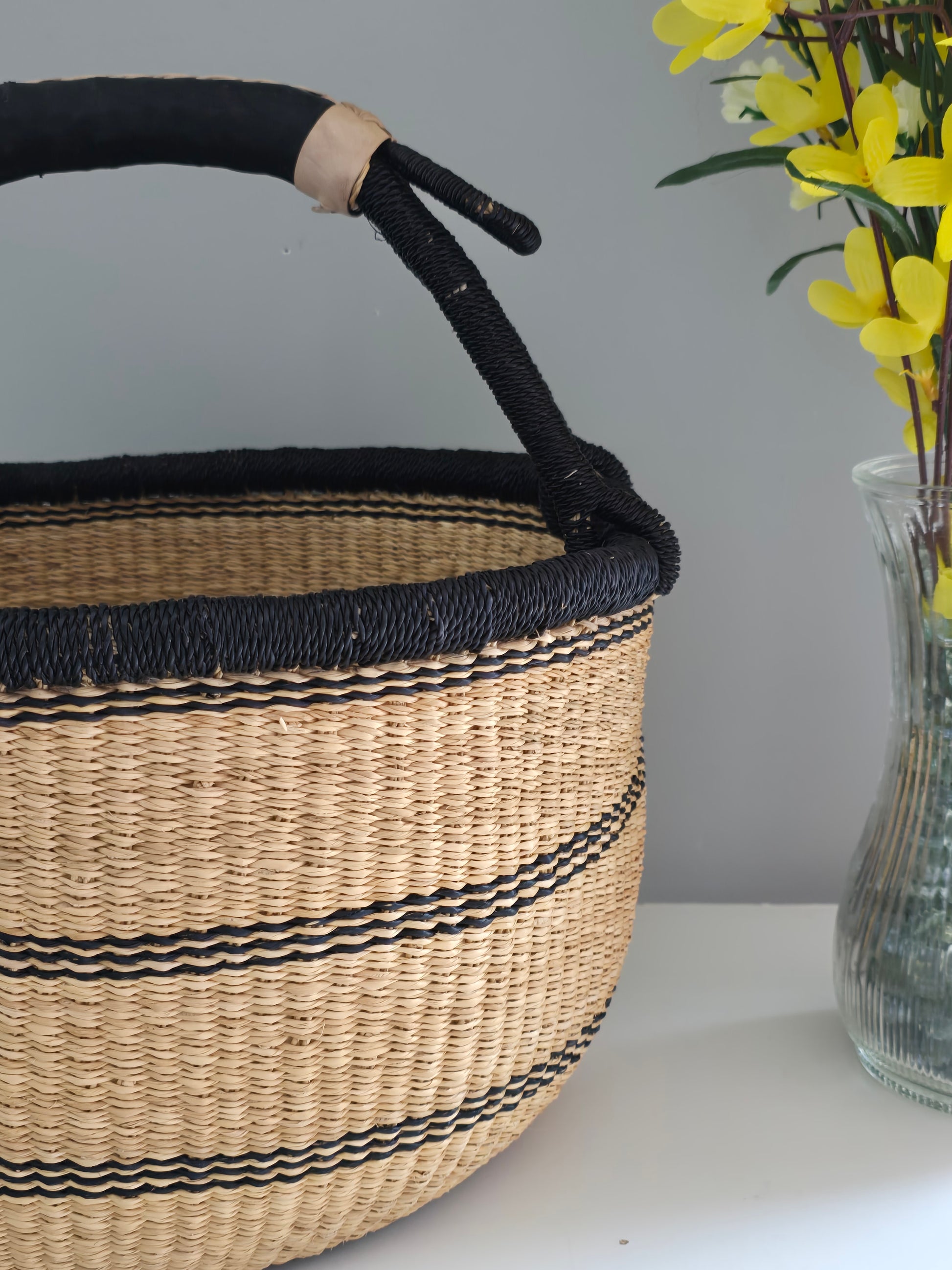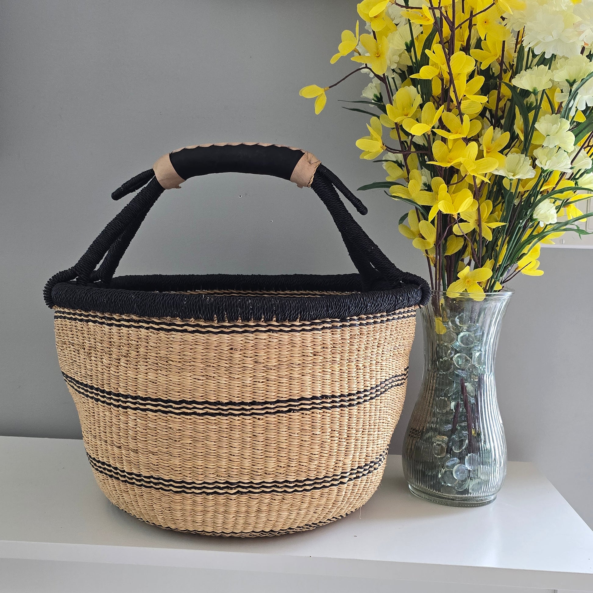 Large Bolga Market Basket, Storage Basket, Grocery Bag, Woven Market Basket, Fruit Basket, Toys Basket,Dog Toy Basket