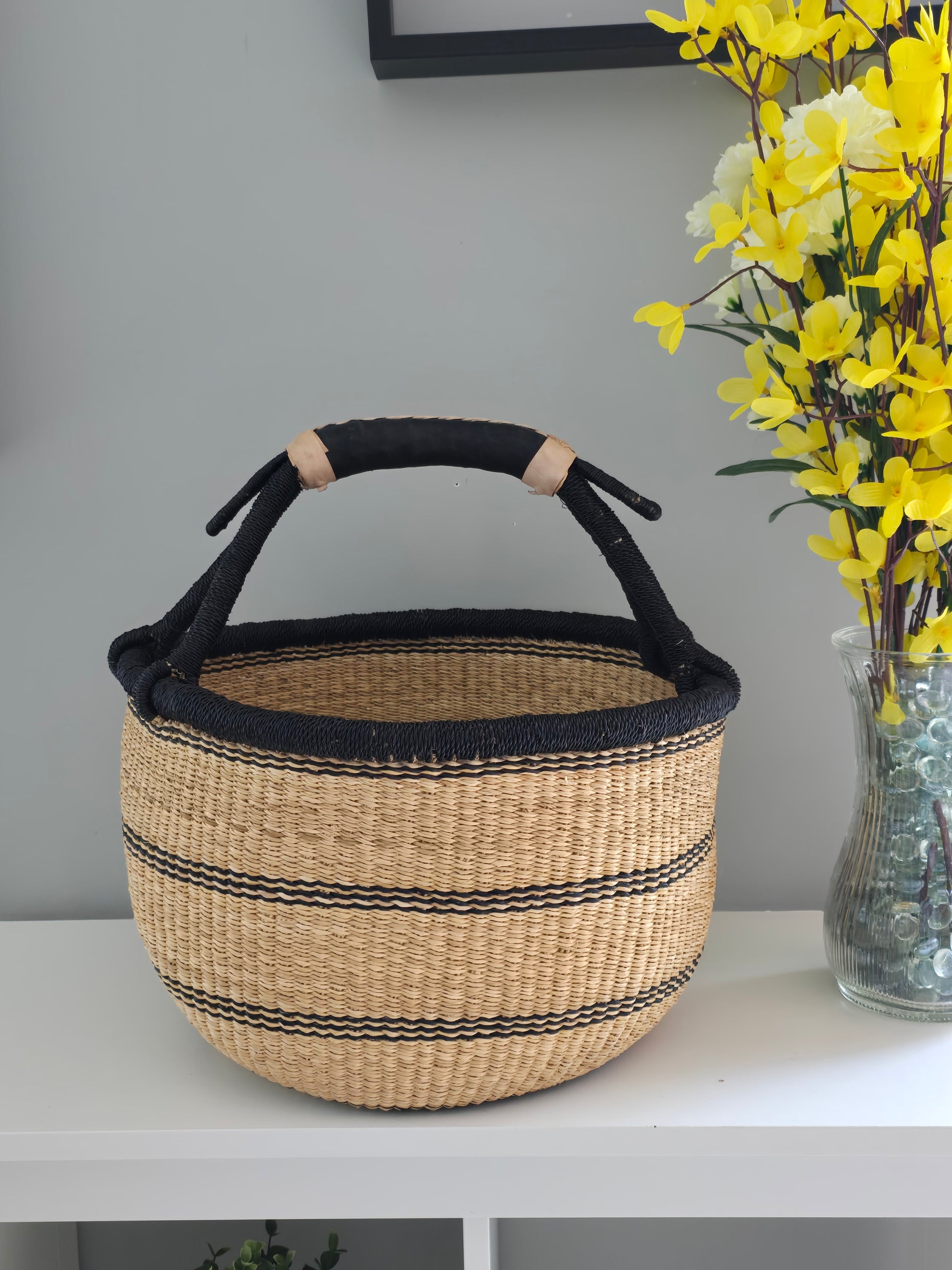 This beautiful handmade market basket is manufactured by craftsman living in Bolgatanga and surrounding villages in Africa.
