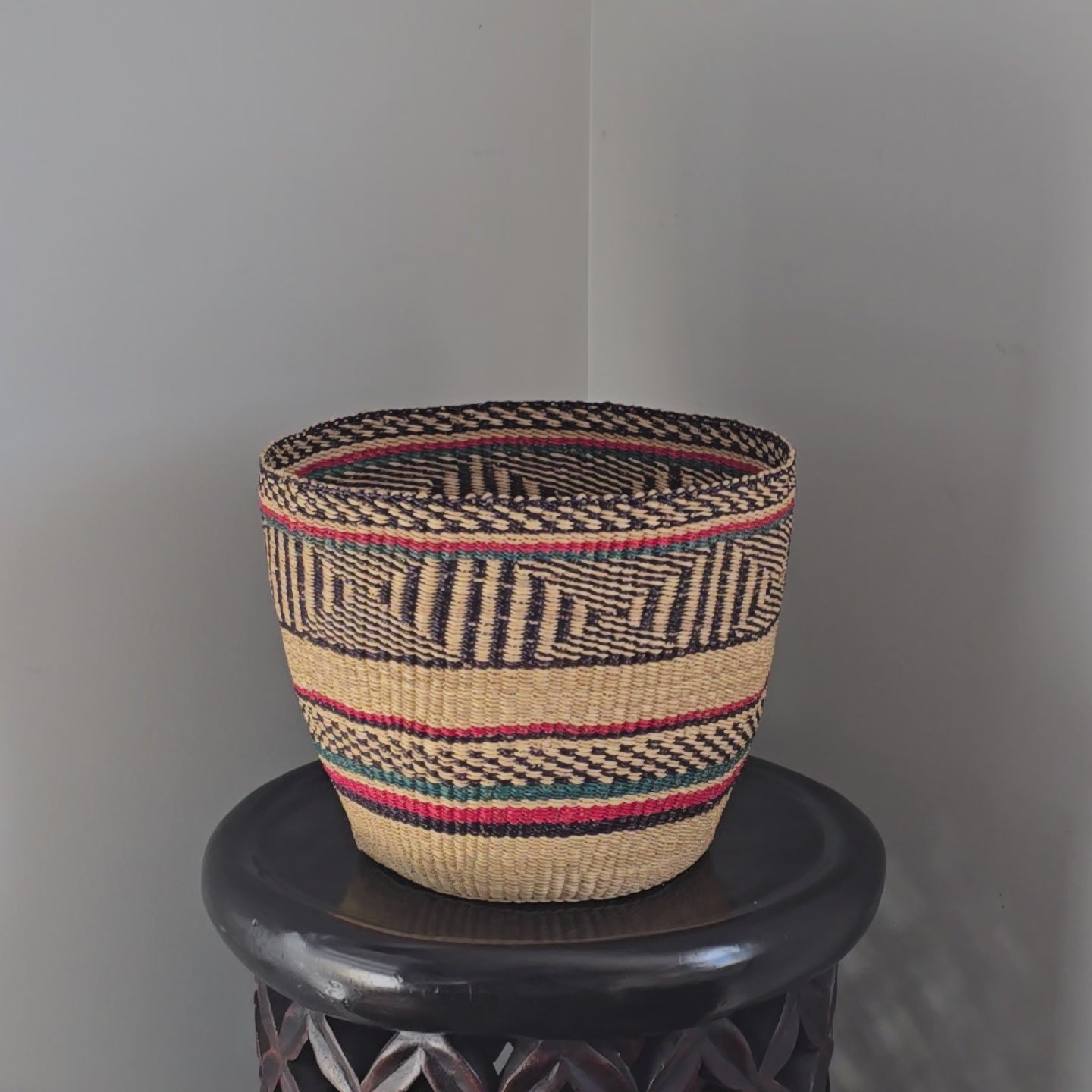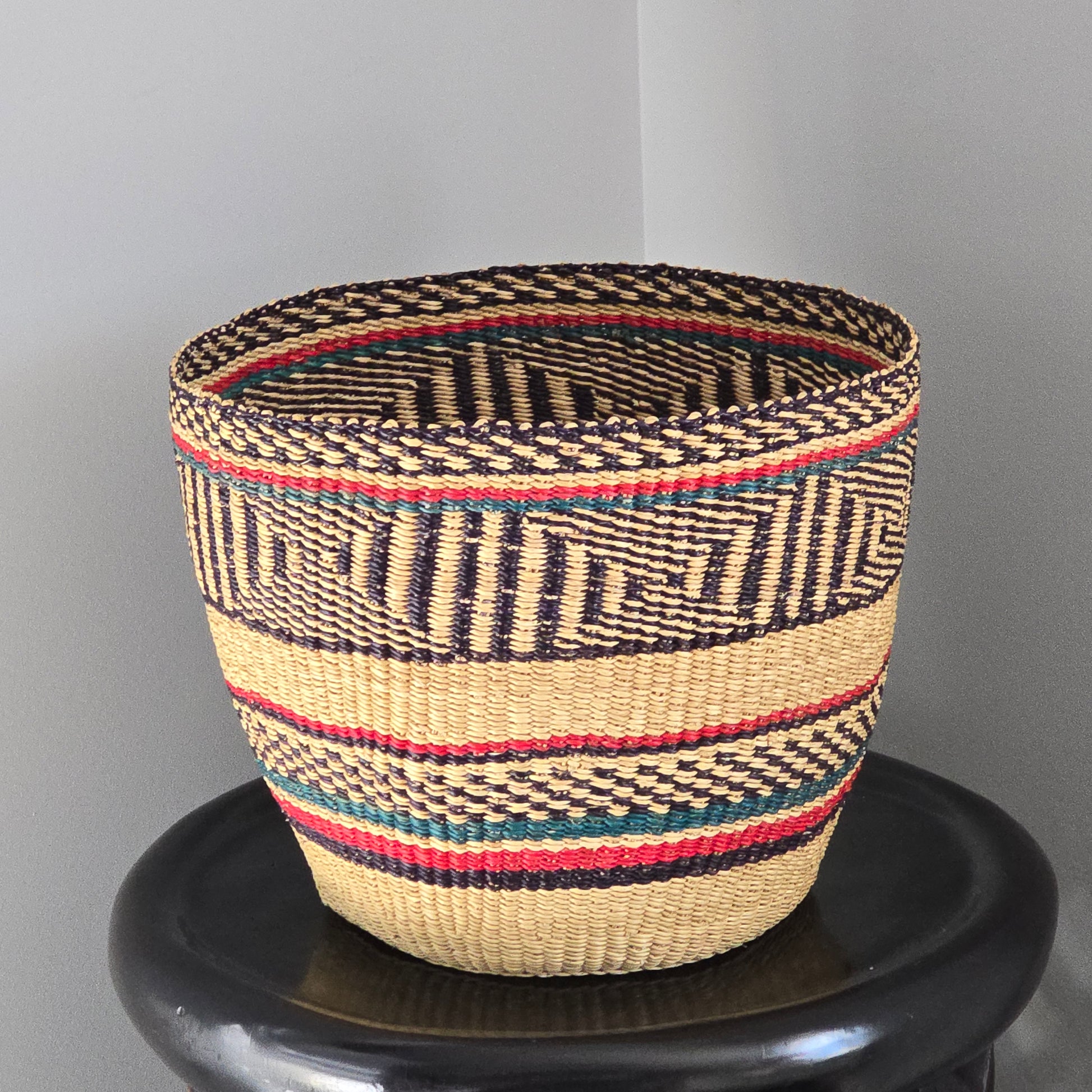 Each basket is intricately made with elephant grass in Bolga, Ghana by local artisans. Every purchase provides incomes to these artisans and their family. All baskets are 100 % eco-friendly and sustainable.