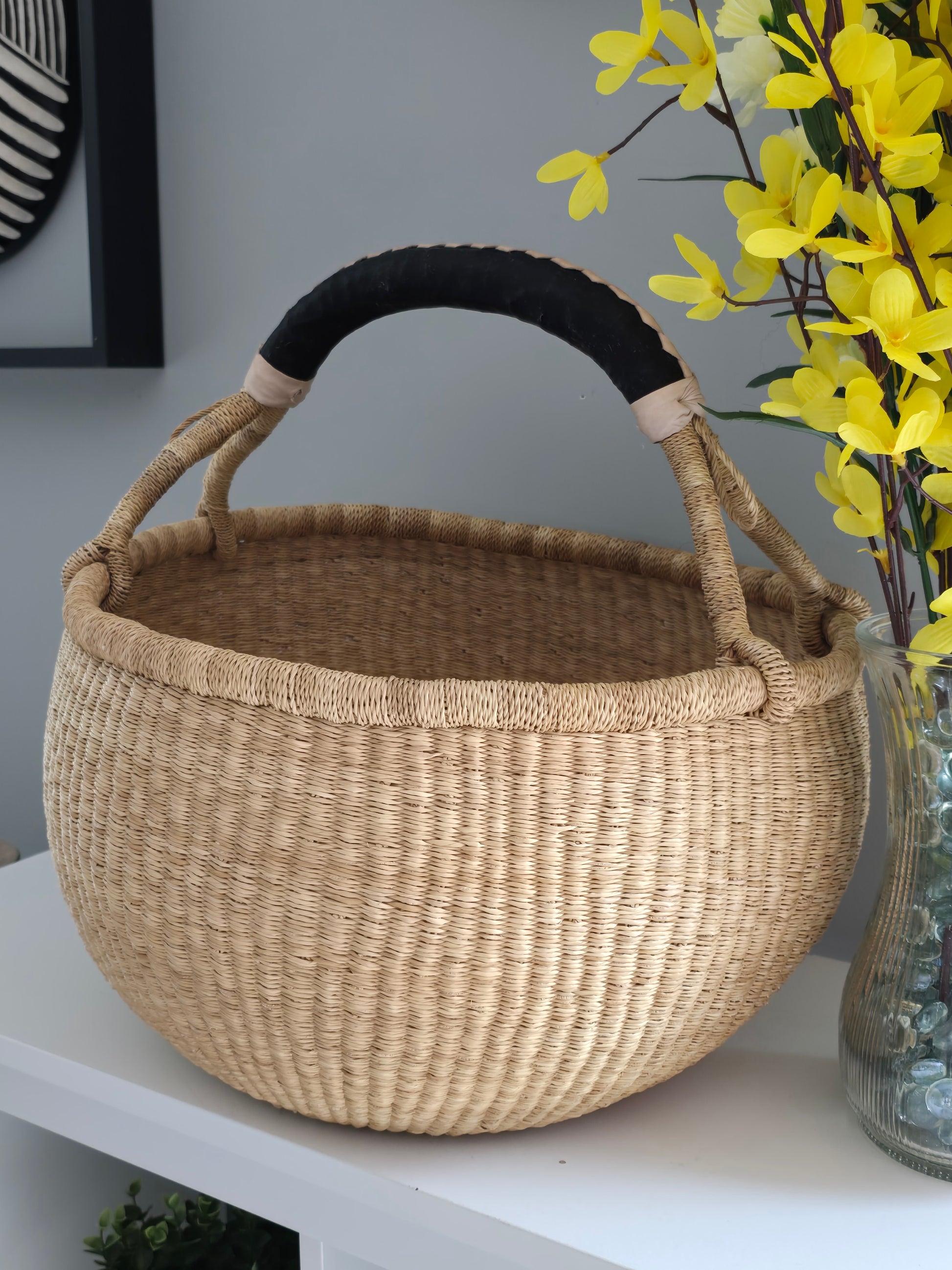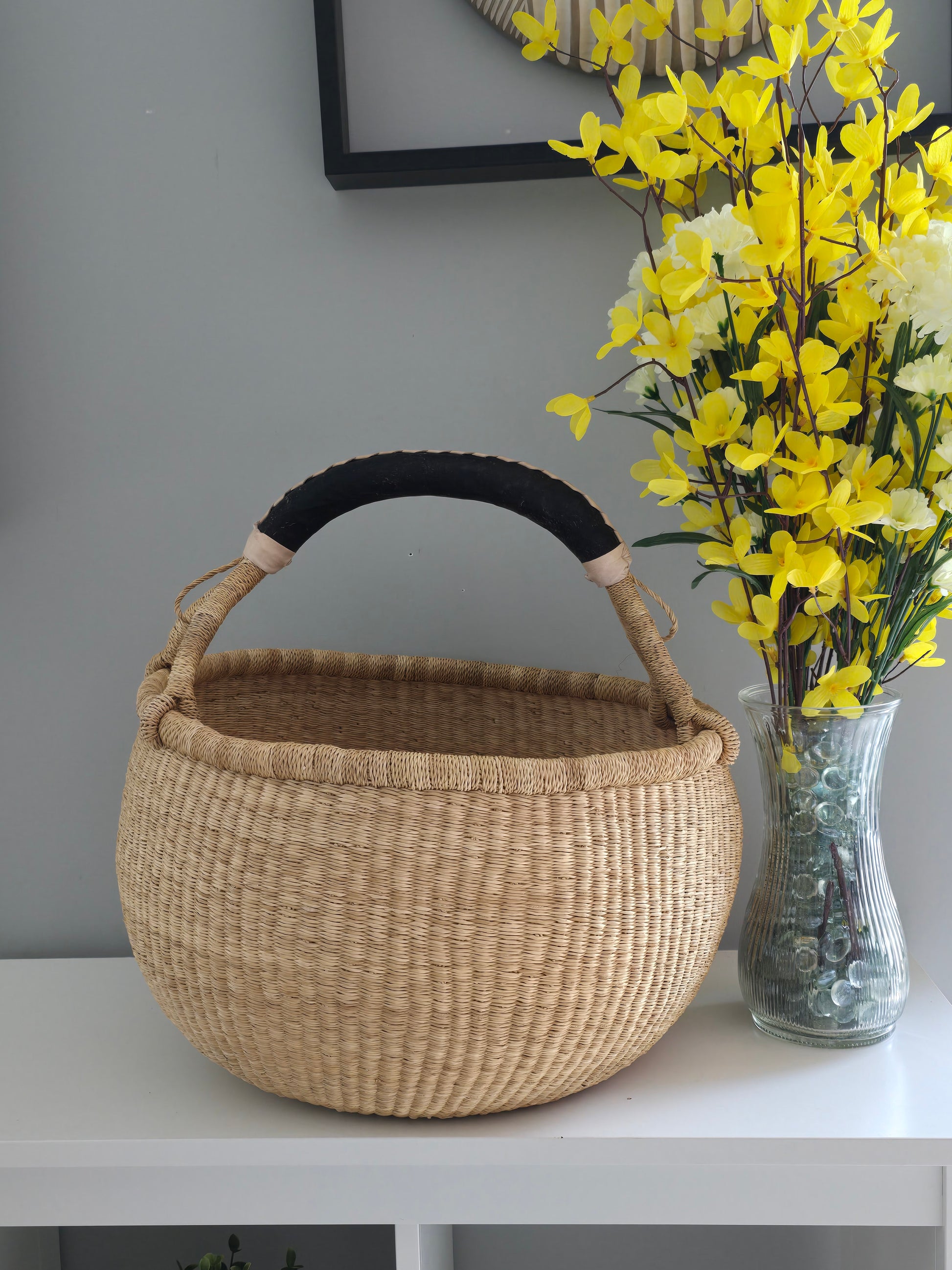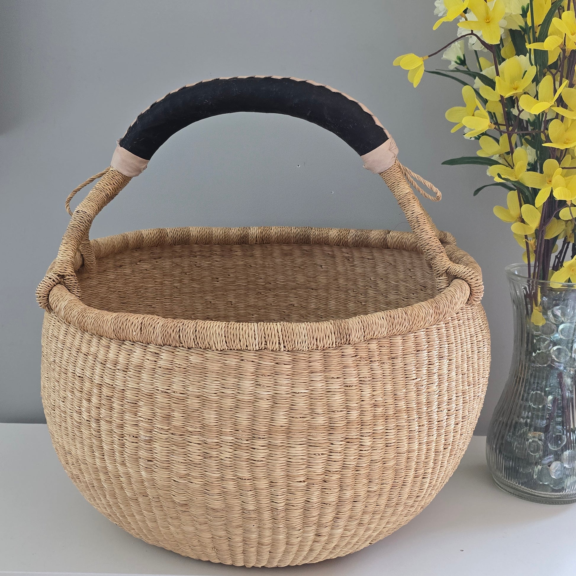 Large Bolga Market Basket, Storage Basket, Grocery Bag, Woven Market Basket, Fruit Basket, Toys Basket,Dog Toy Basket